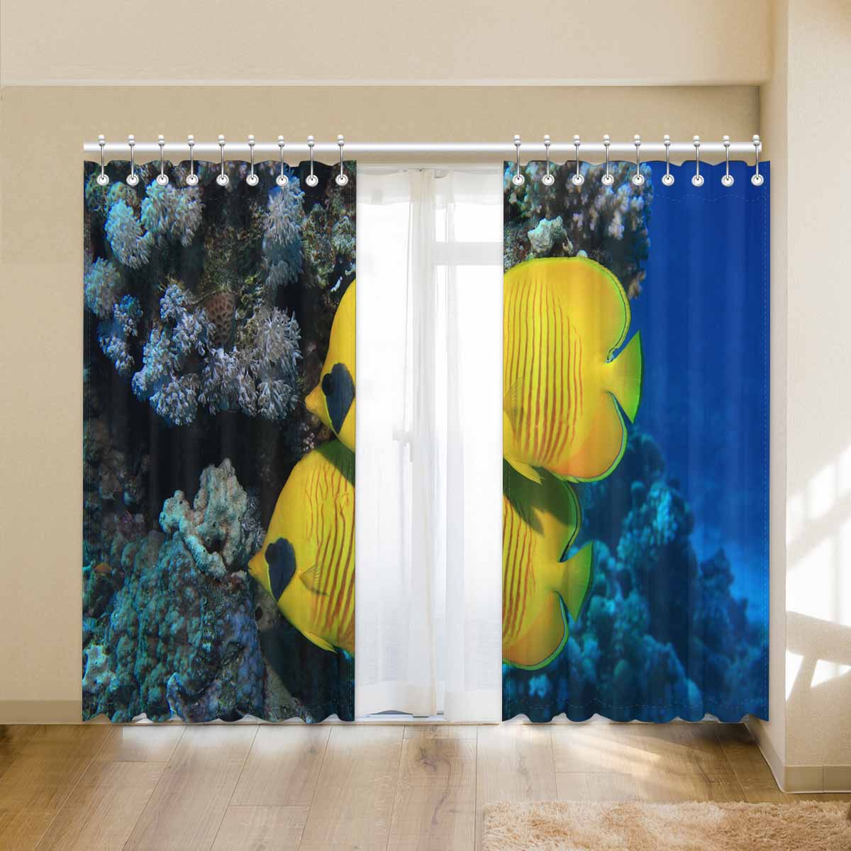 Seaworld Window Curtains print Tropical masked butterfly fish coral reef