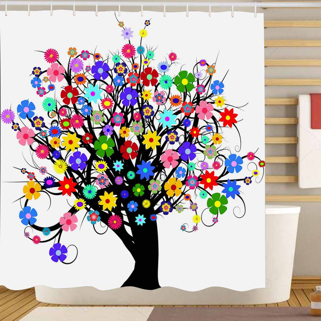 Three and Mouttain themed Shower Curtains Colorful Flower tree