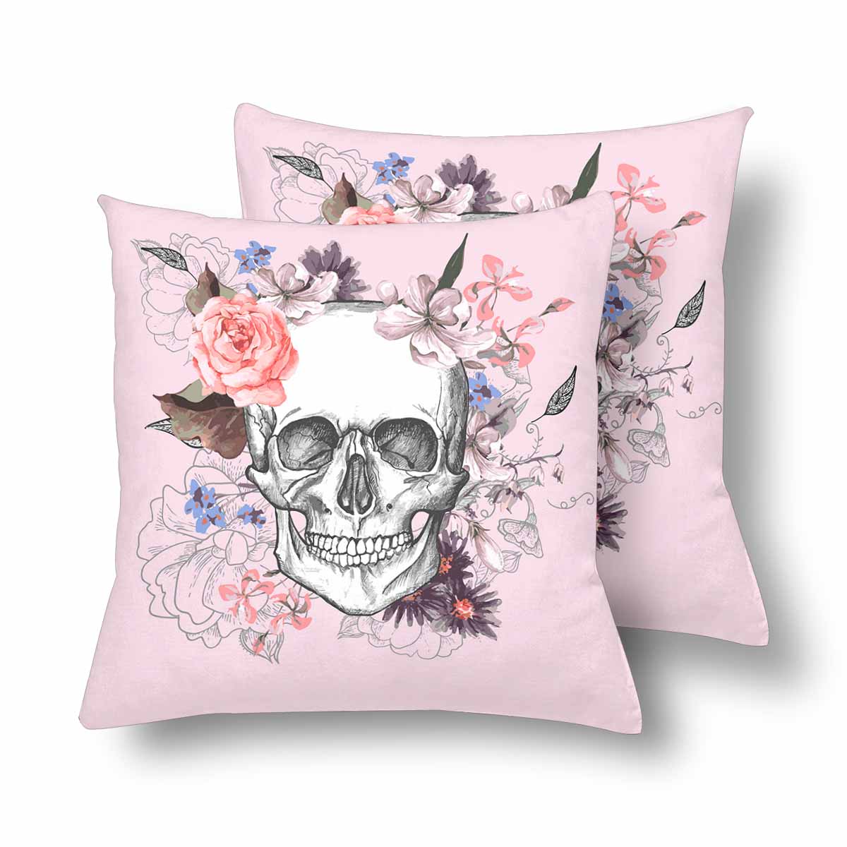Skull themed Pillow Cases printed with Skull and Flowers