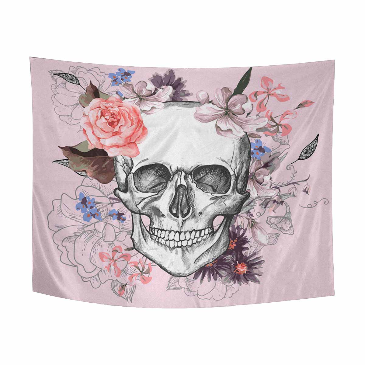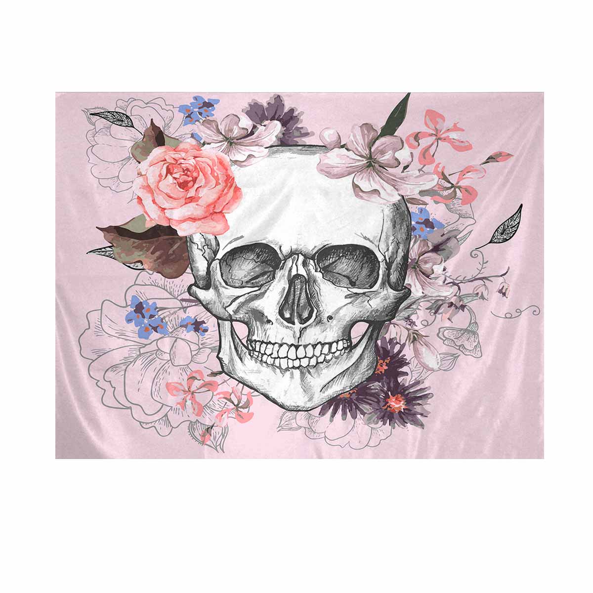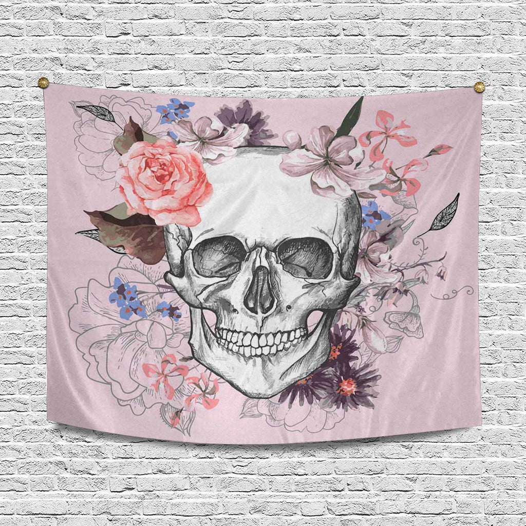 Skull themed Wall Tapestries printed Skull and Flowers