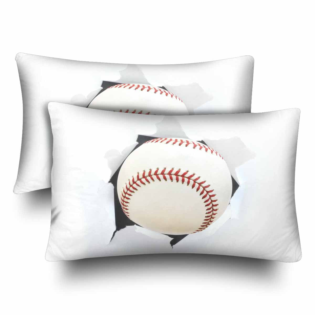 Sports themed Rectangle Pillow Cases printed Baseball Bursting Though a Hole