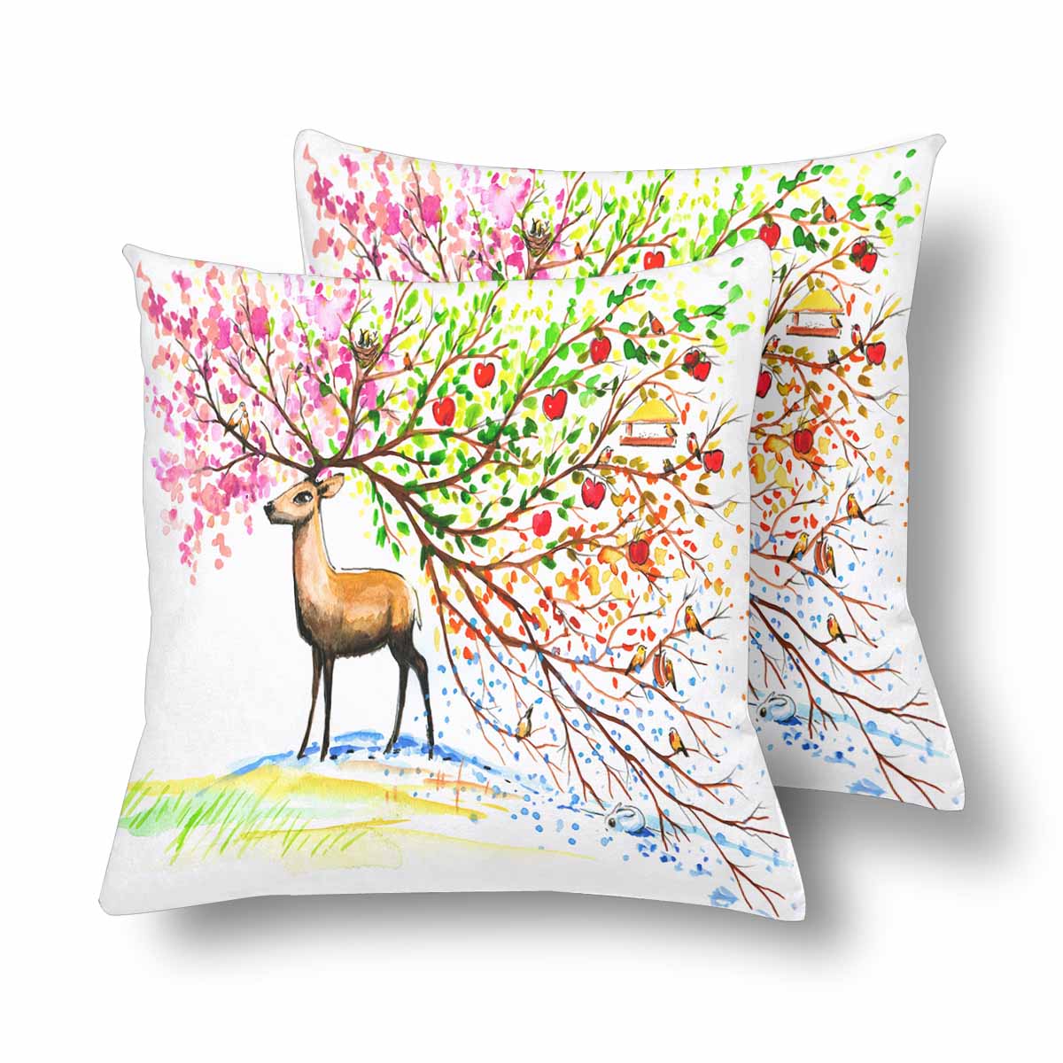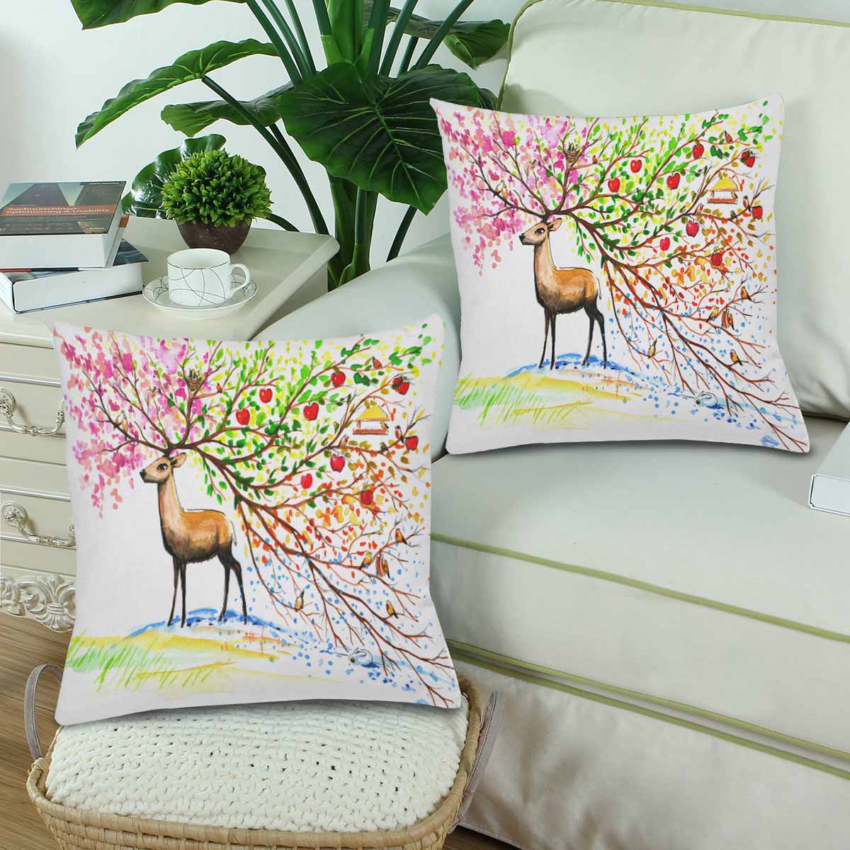 Pillow Case printed Brown deer with beautiful horn in fours seasons