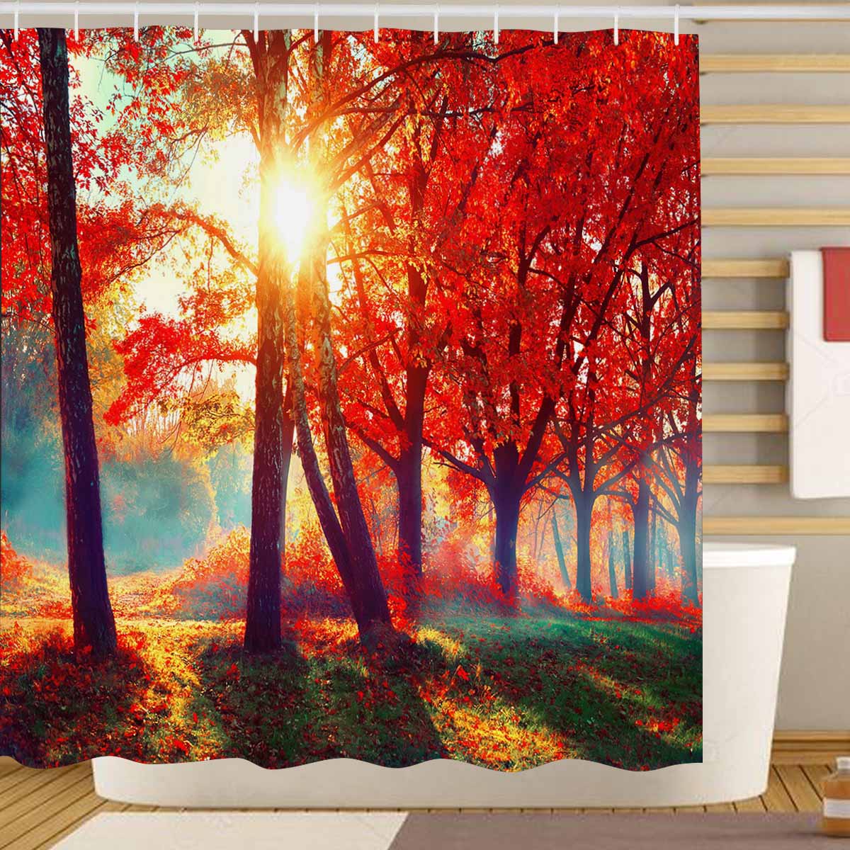 Three and Mouttain themed Shower Curtains Autumn Fall Forest nature scene