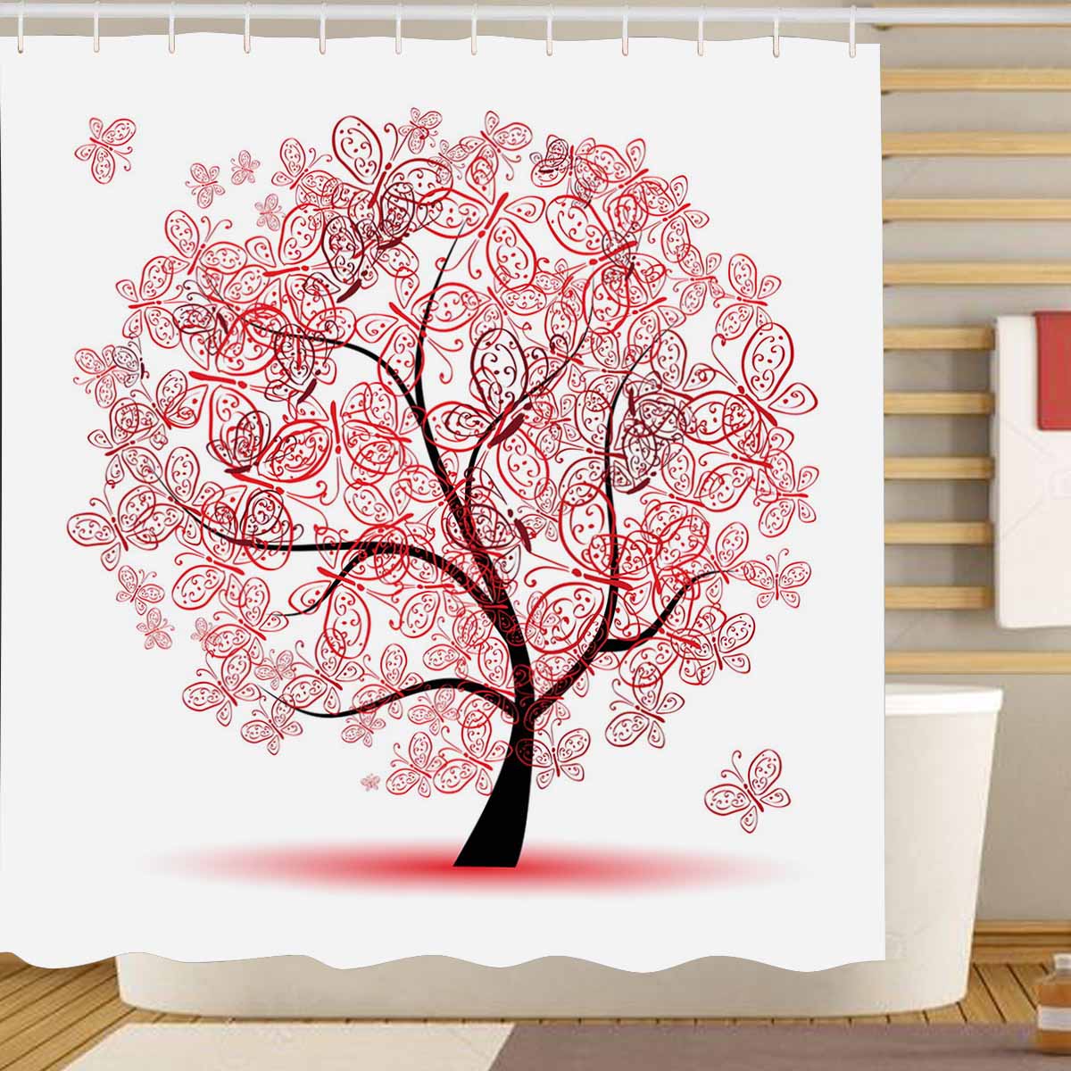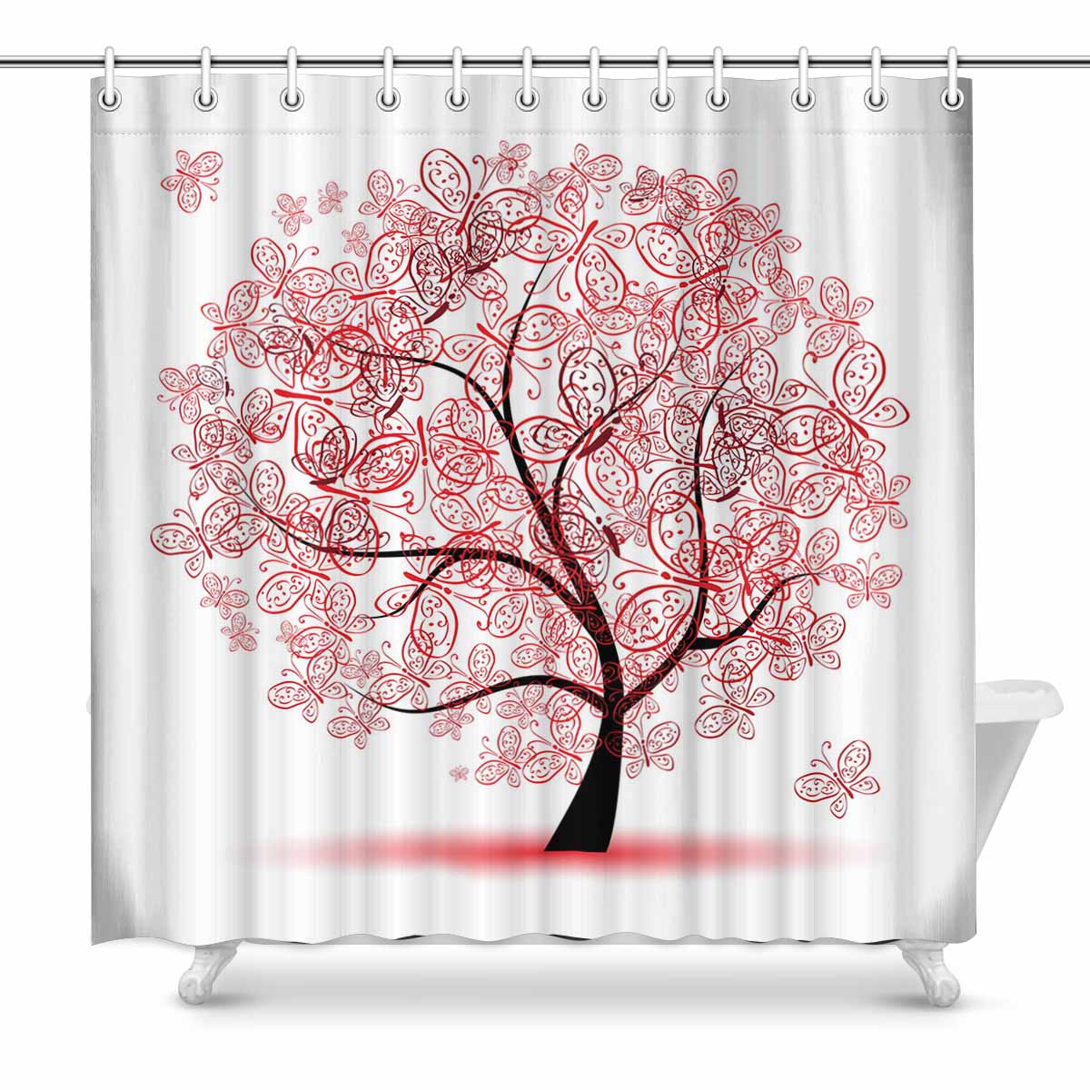 Three and Mouttain themed Shower Curtains Floral tree with butterflies