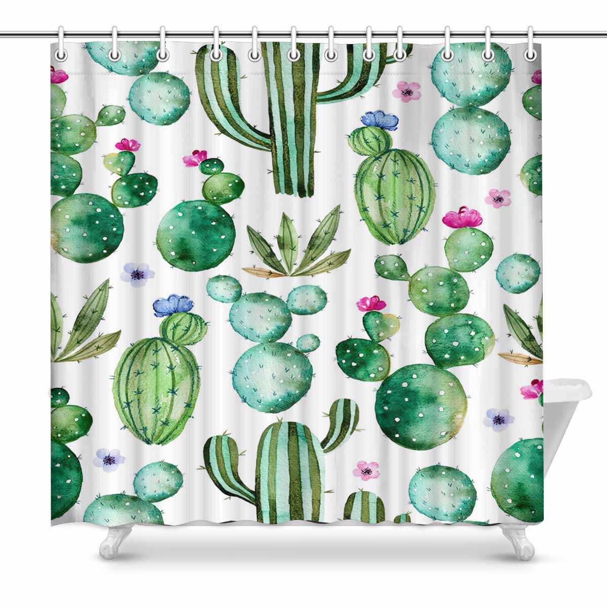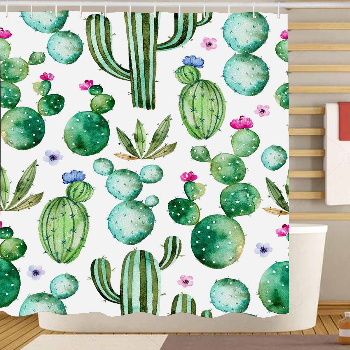 Three and Mouttain themed Shower Curtains Watercolor handpainted cactus plant
