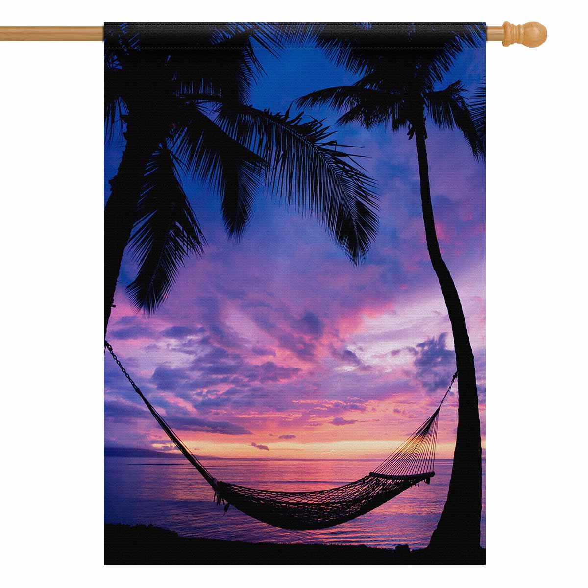 Garden Flags printed tropical themed with Hammock Silhouette with Palm Trees