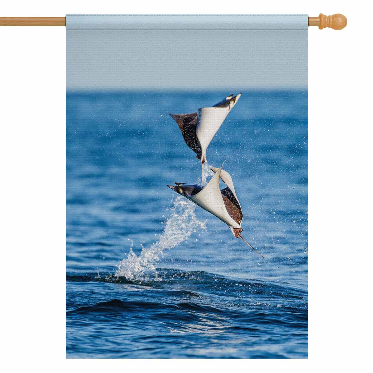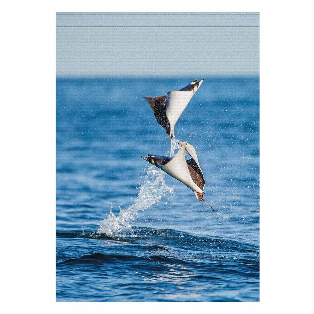 Garden Flags printed tropical themed with Mobula rays jumping out of water