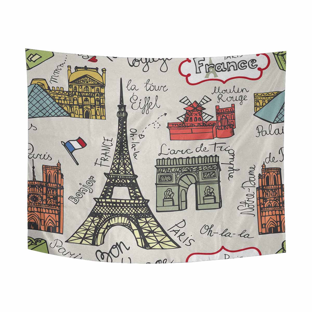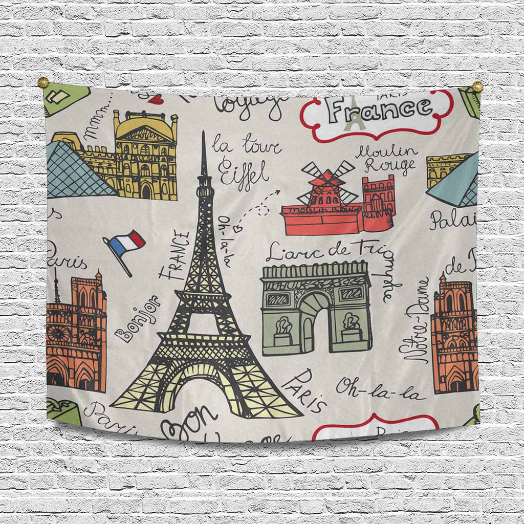 Coutry themed Wall Tapestries Paris landmark and lettering