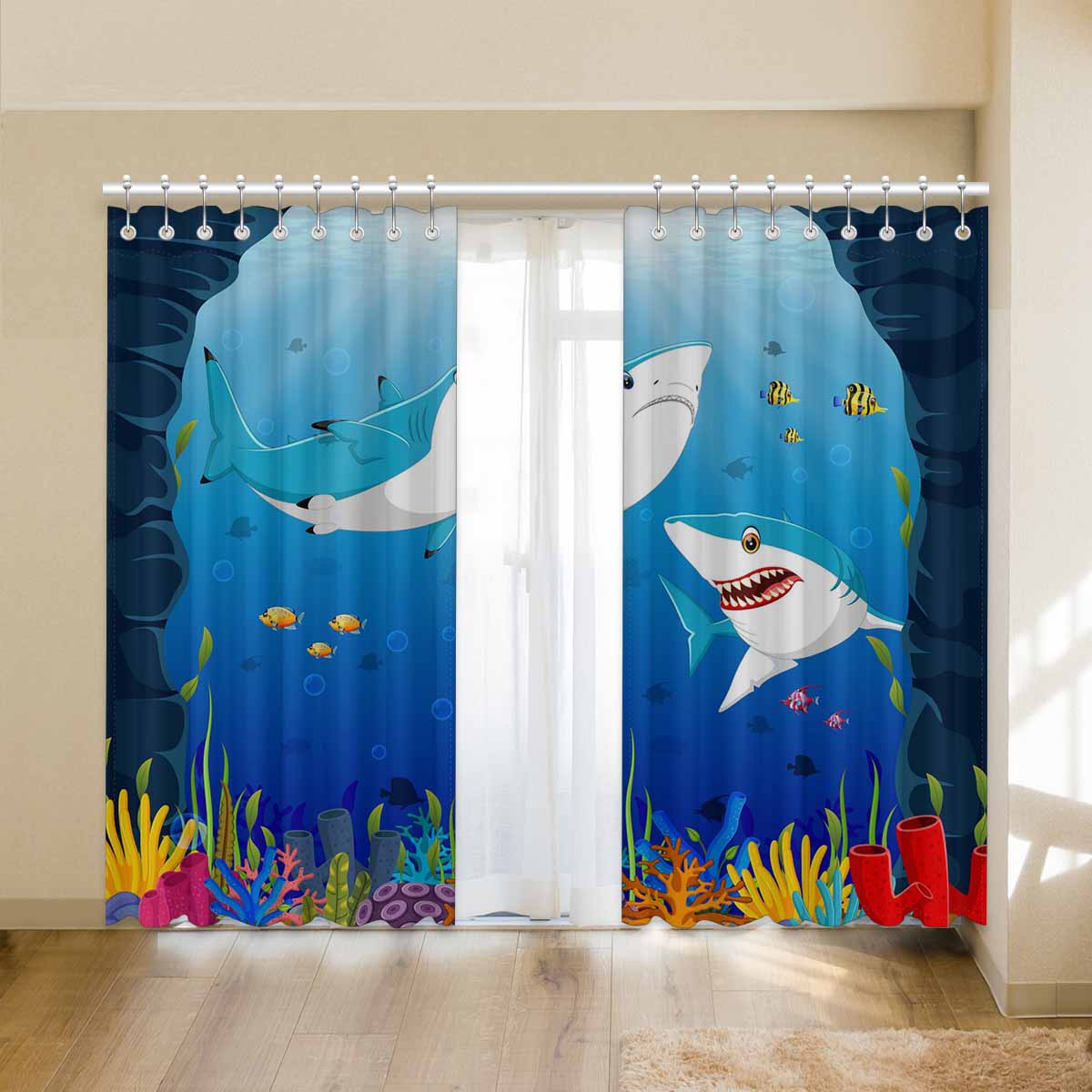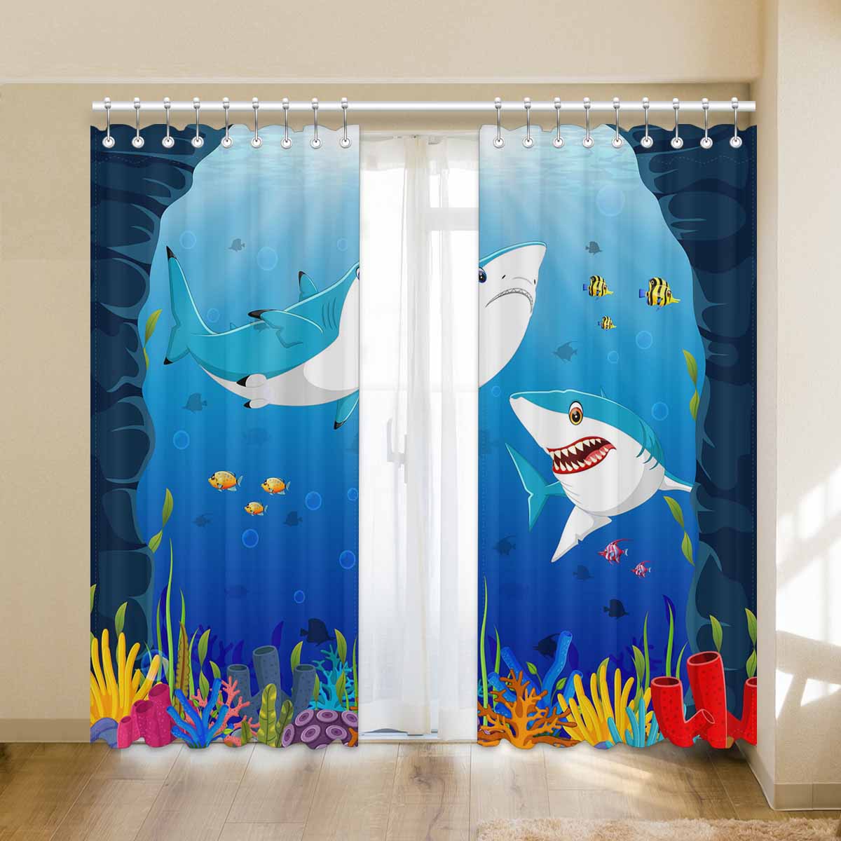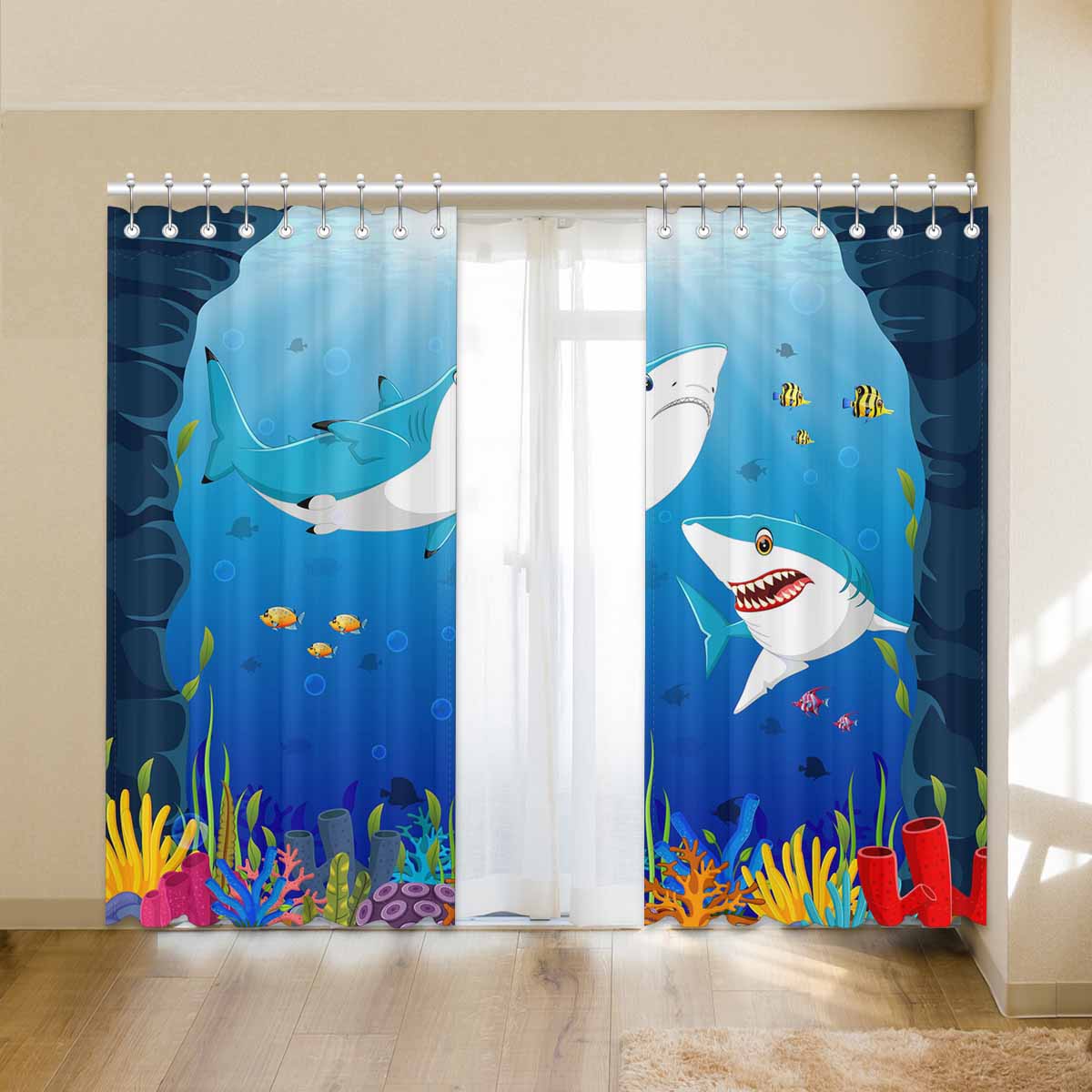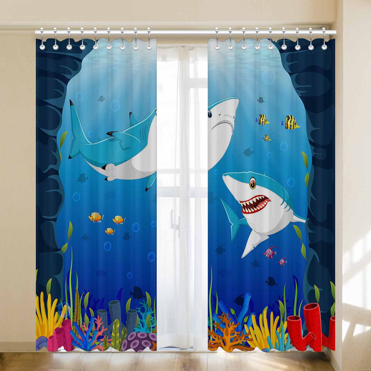 Seaworld Window Curtains print shark under the sea
