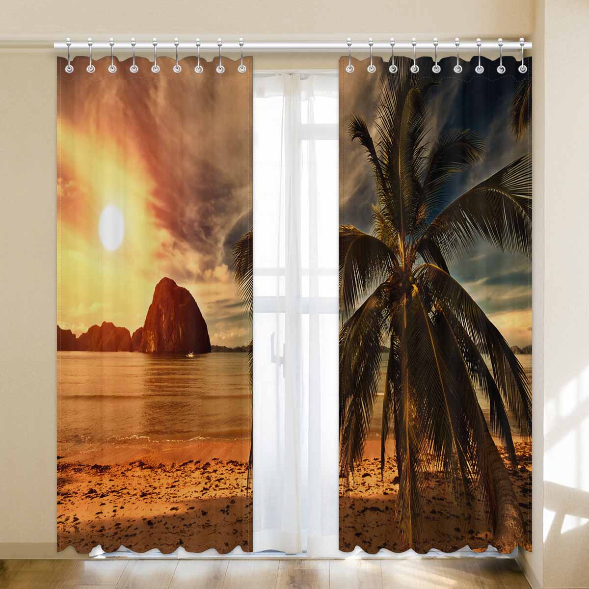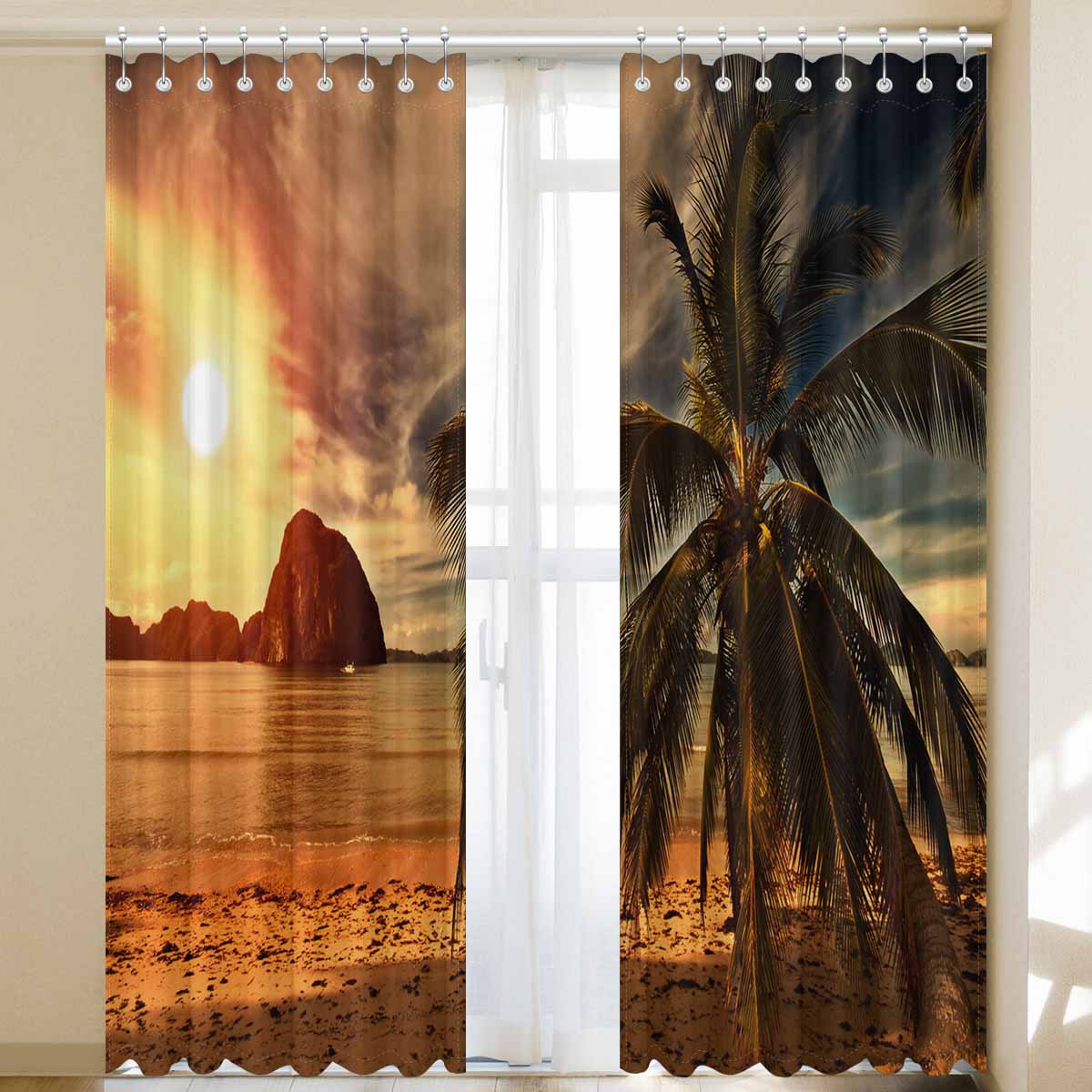 Window Curtains print Hot Tripical Sunset