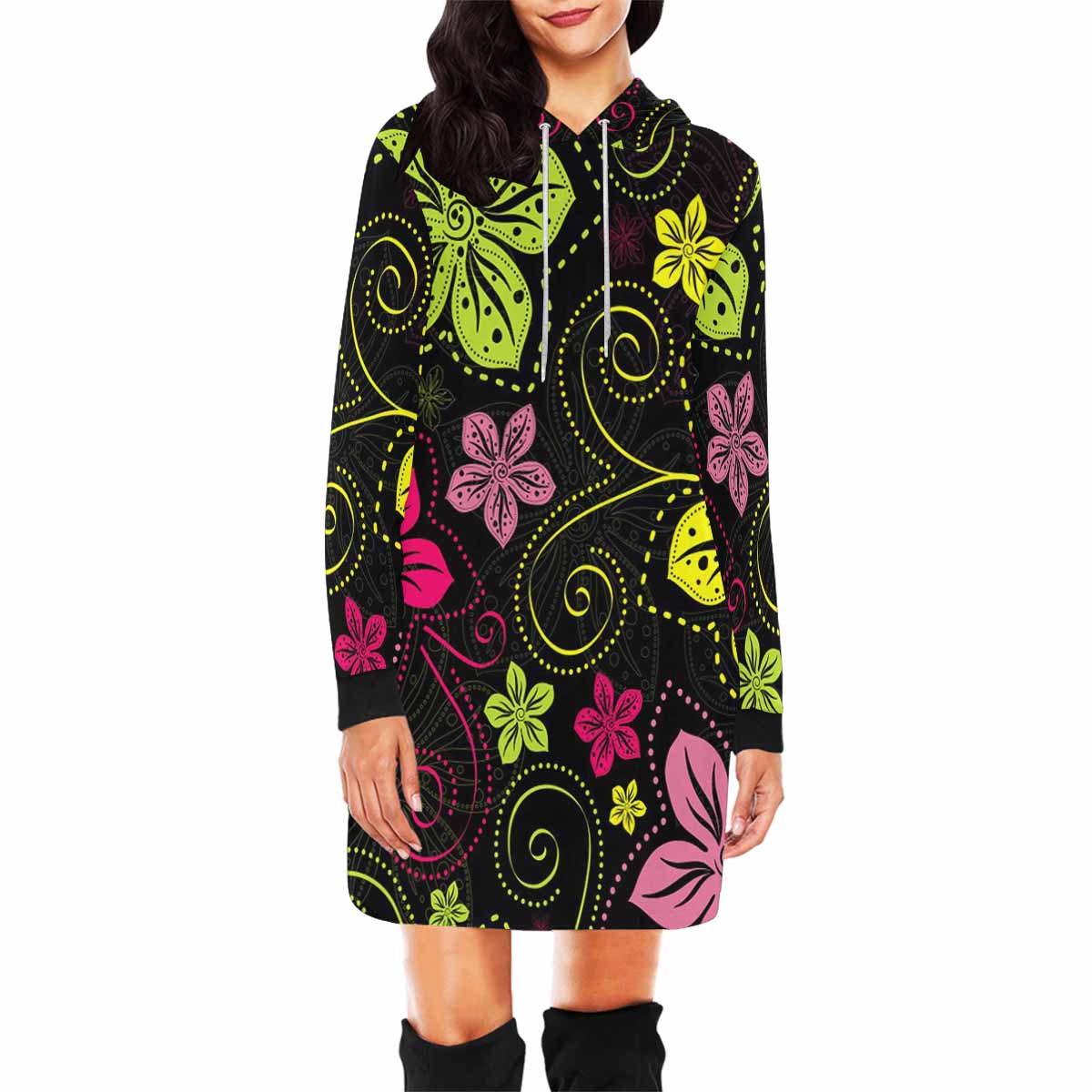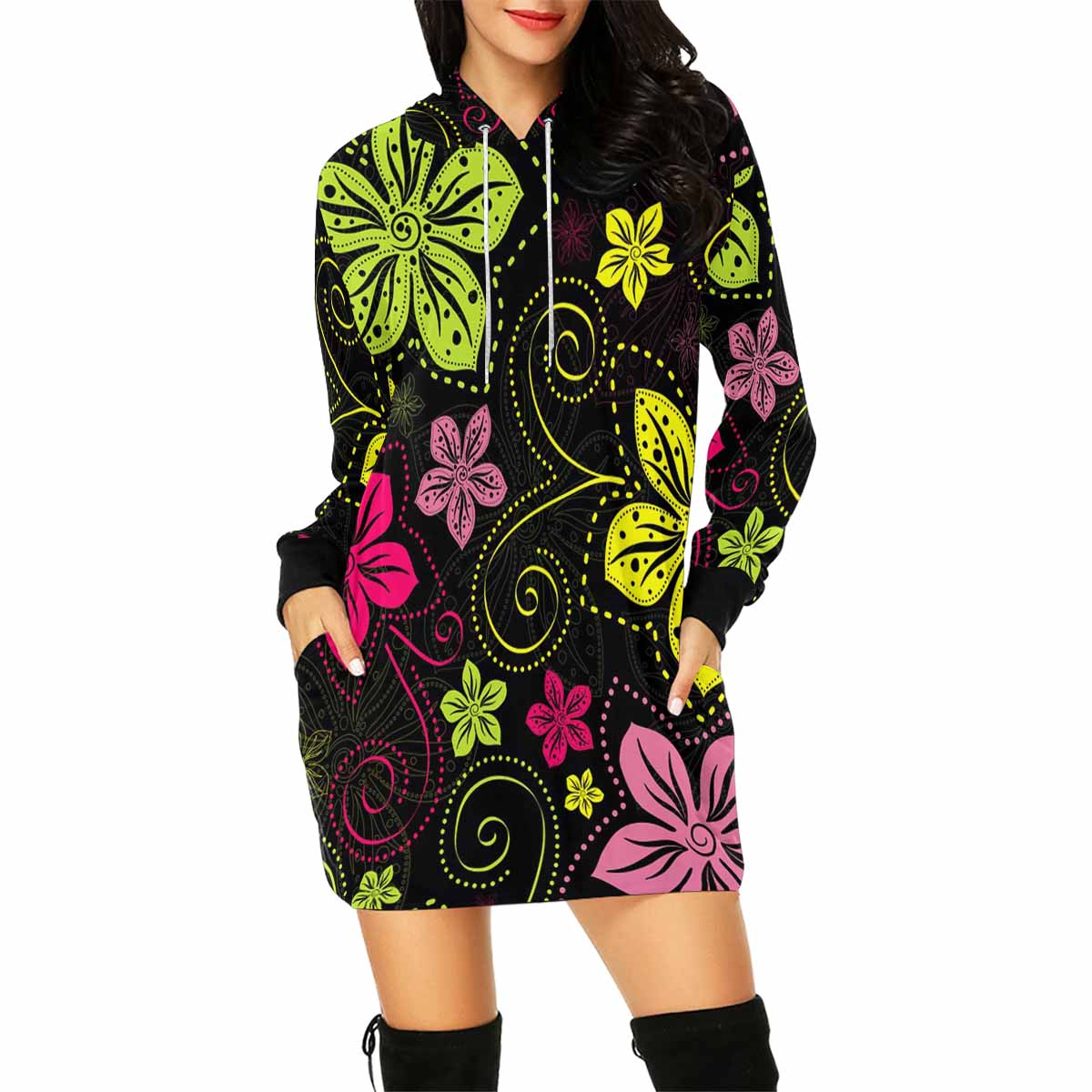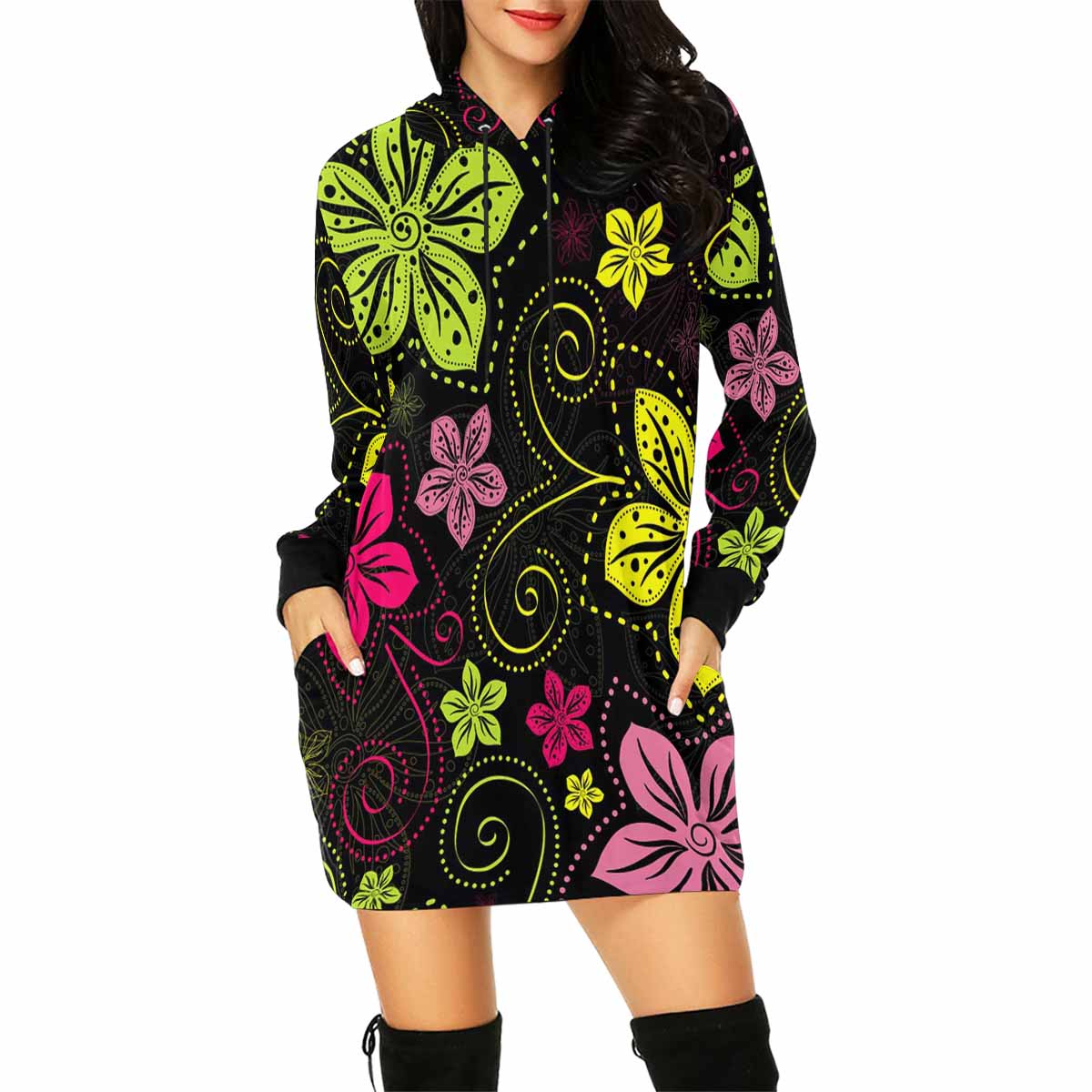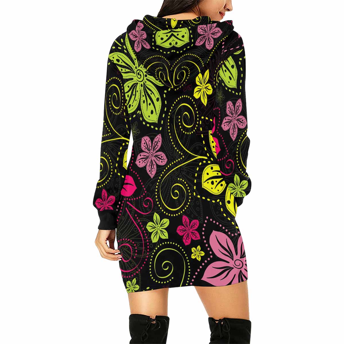 black floral pattern print Women's Mini Dress Hoodies