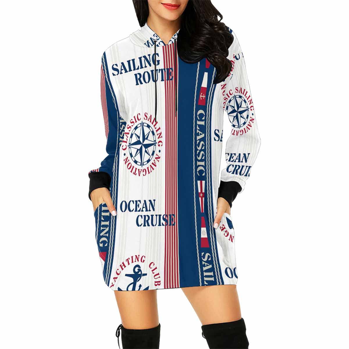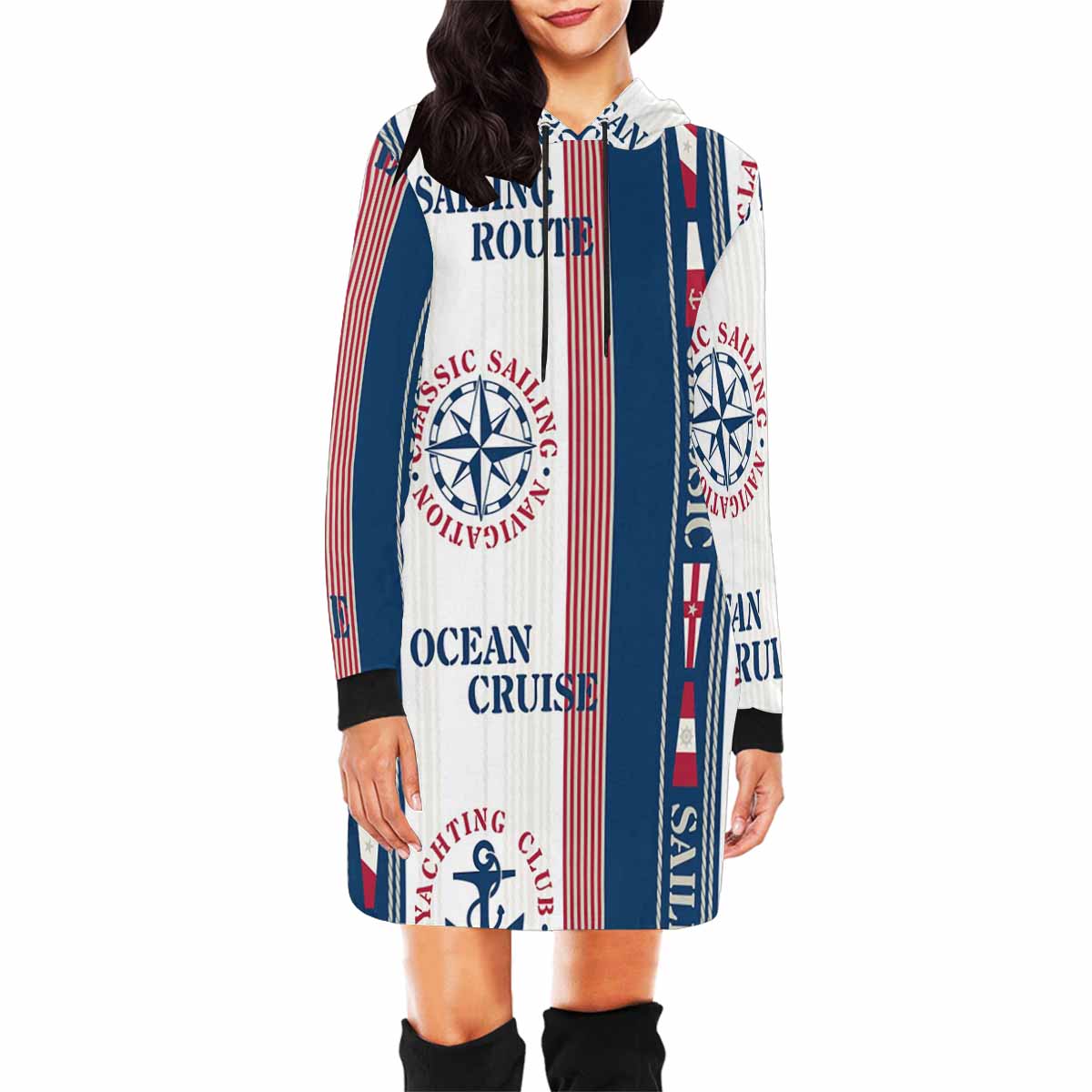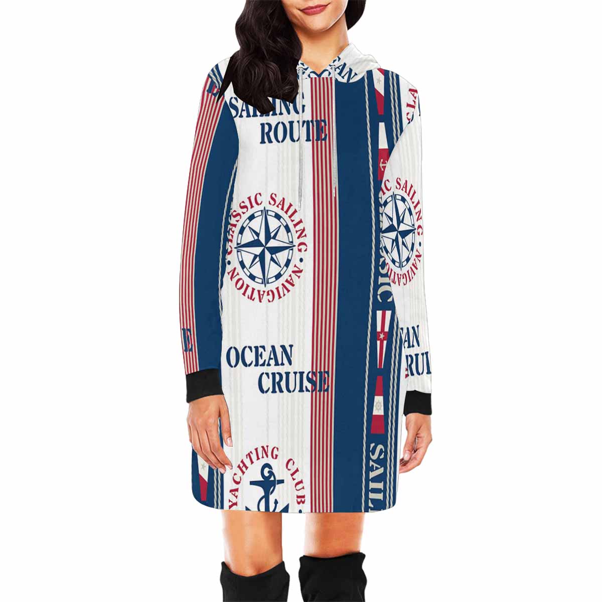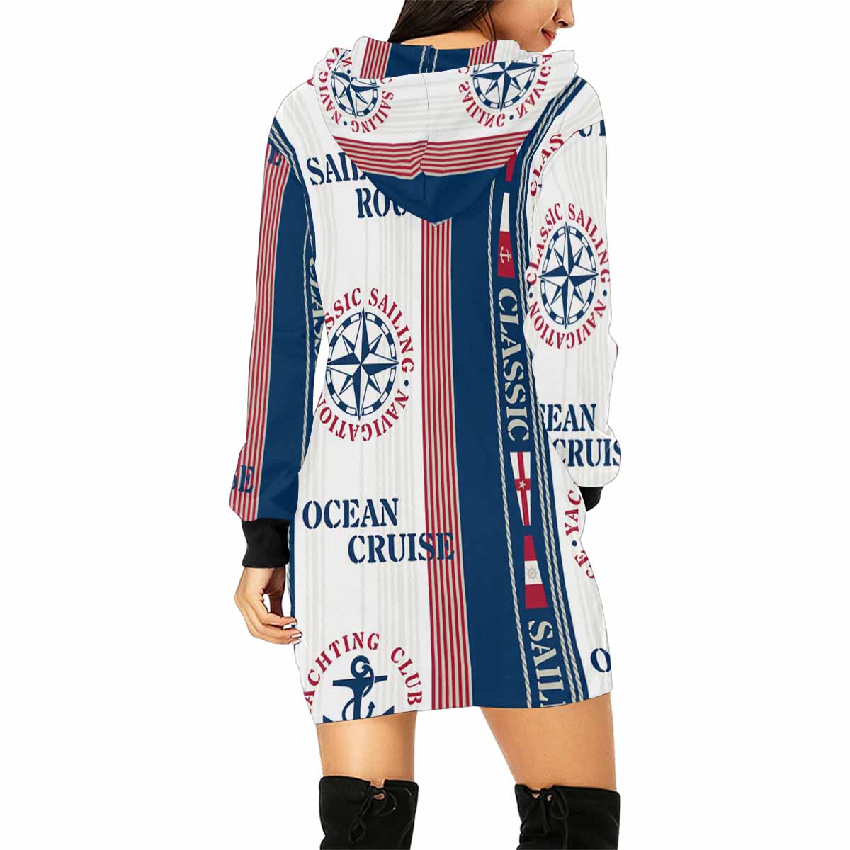 graphic Ocean Cruise Sailing pattern Women's Mini Dress Hoodies