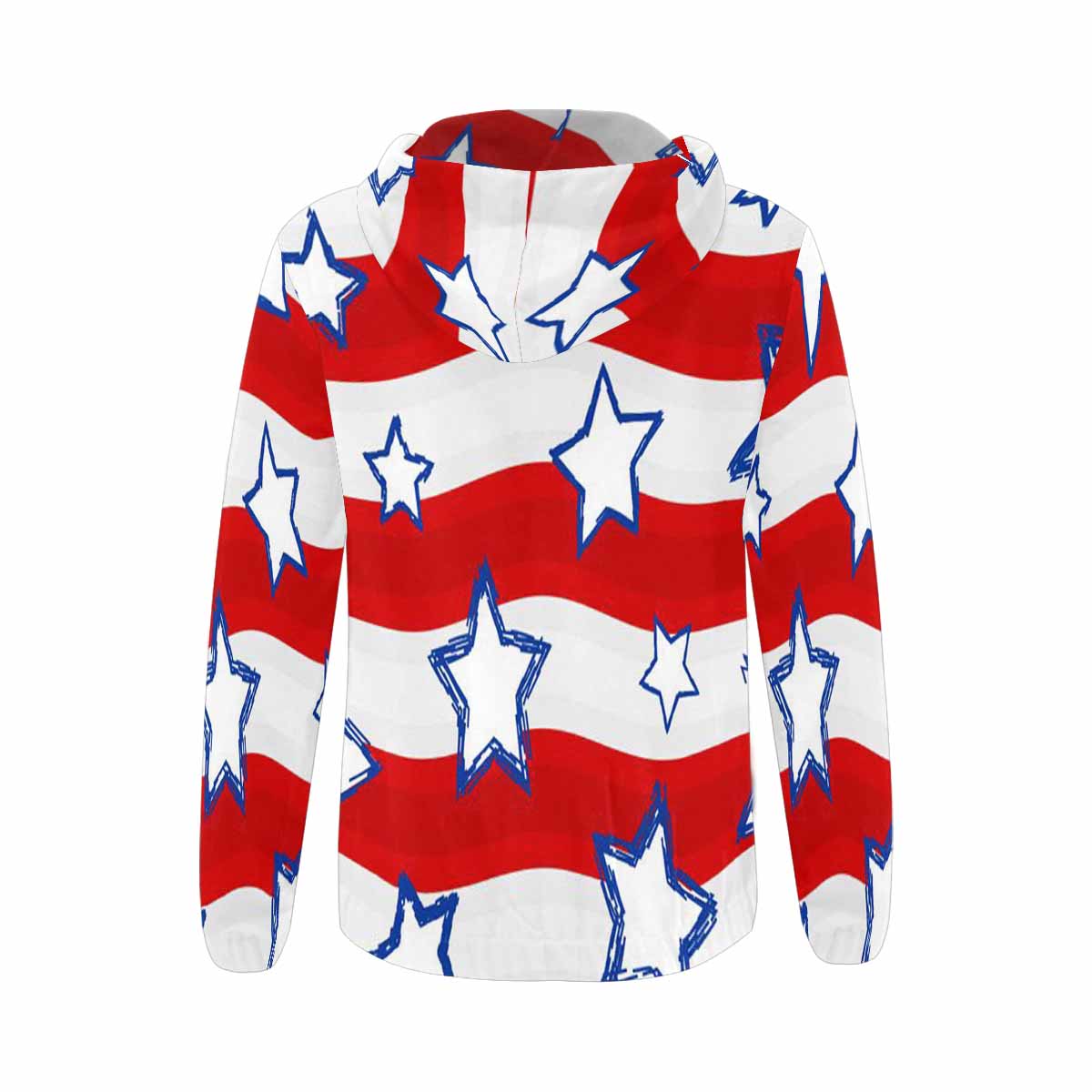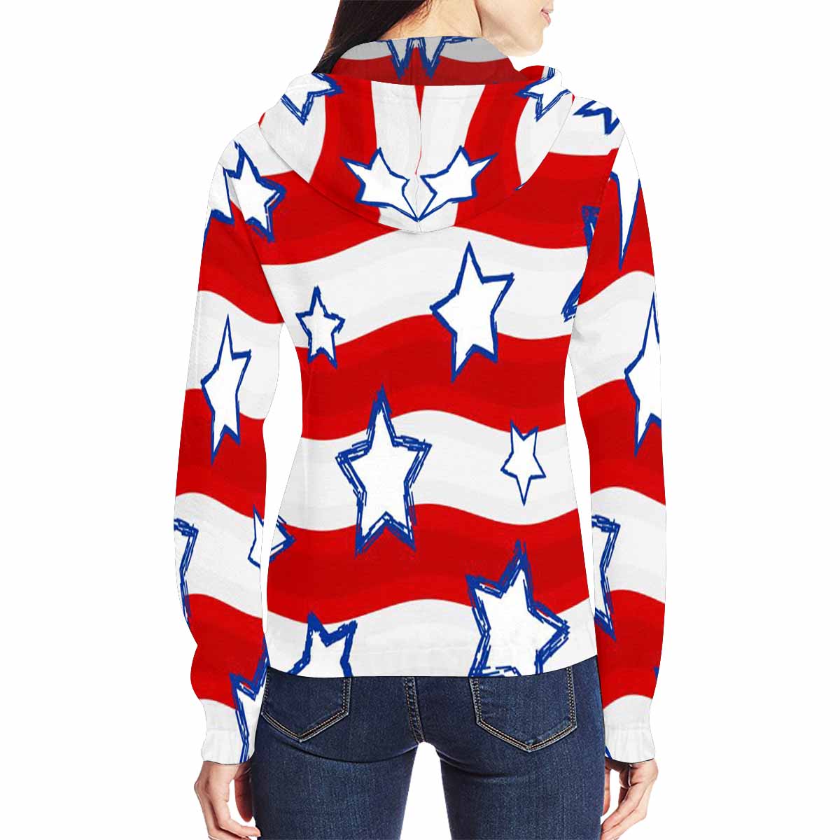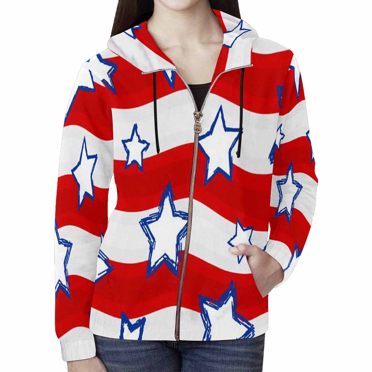 Women's Full Zip Hoodies print with Fourth of July Stars and Stripes