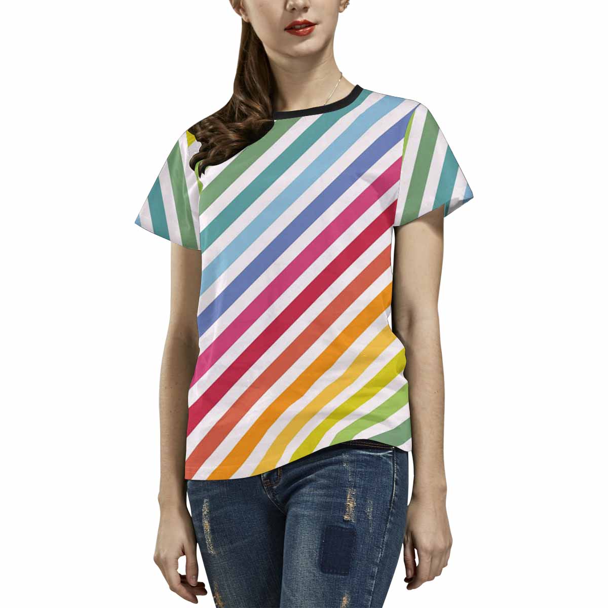 Womens graphic T-Shirts print with colorful Diagonal pattern