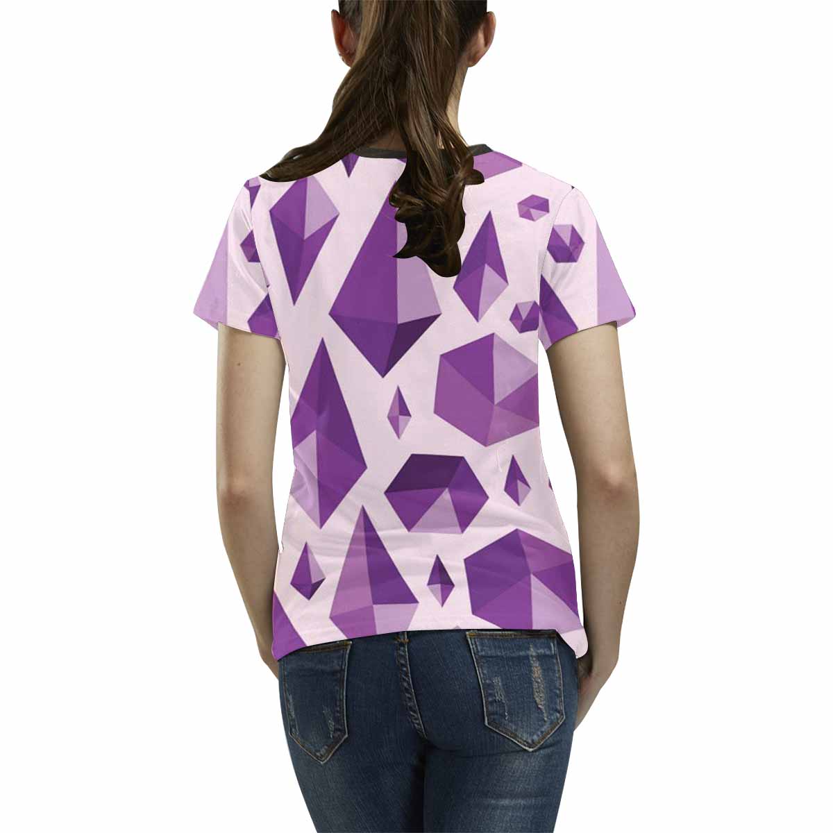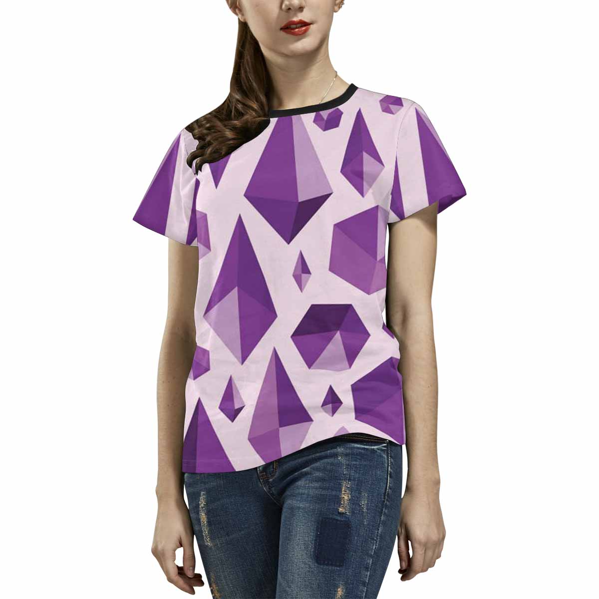 Womens graphic T-Shirts print with Purple geometric jewel shapes pattern