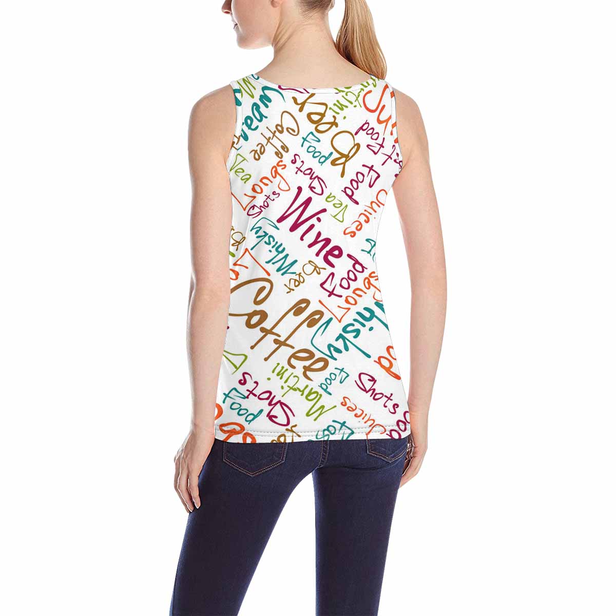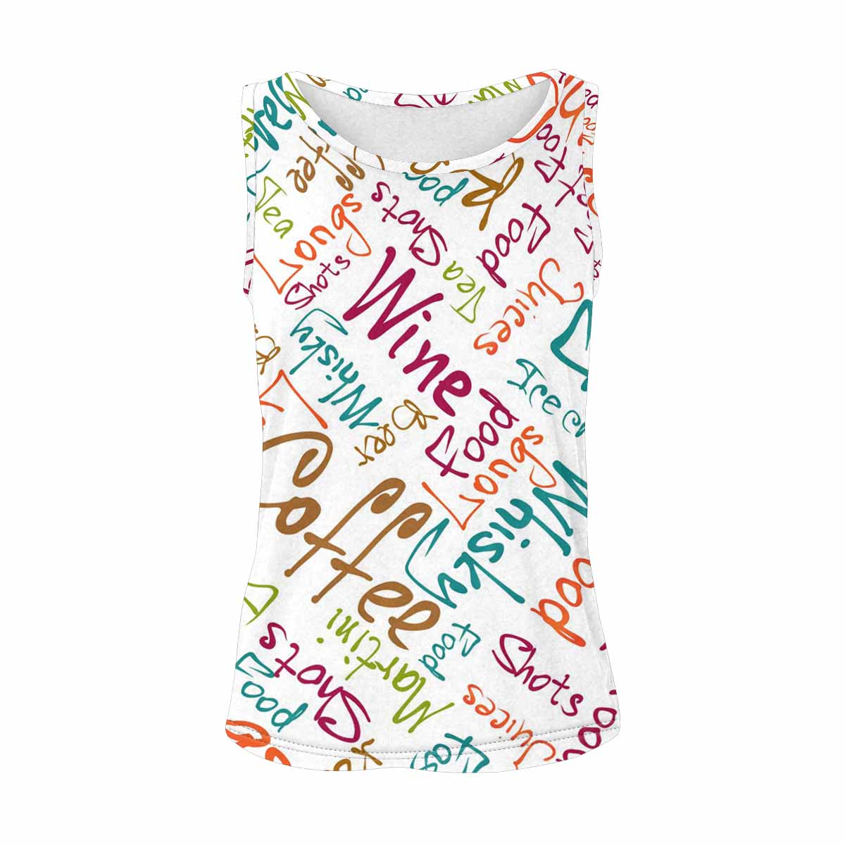 Women's Tank Top print with colorful Food and drinks names pattern