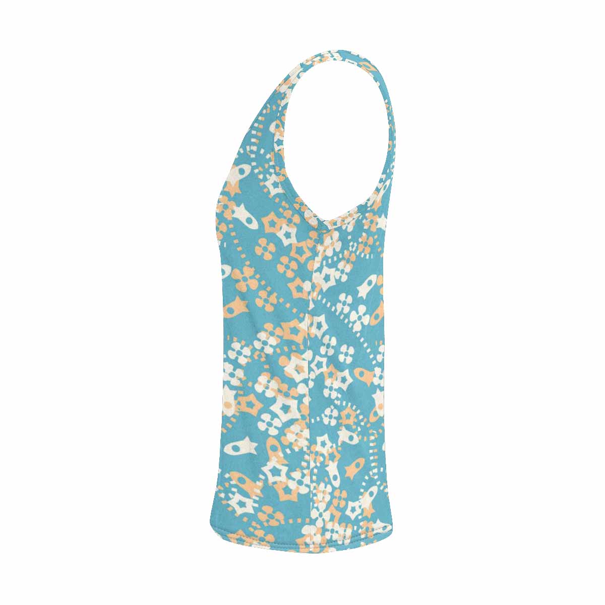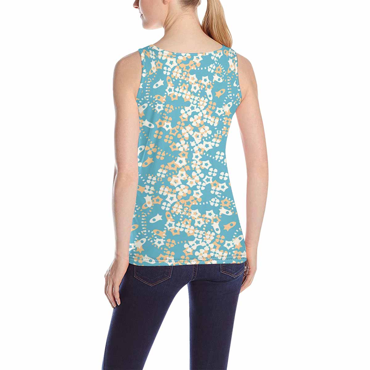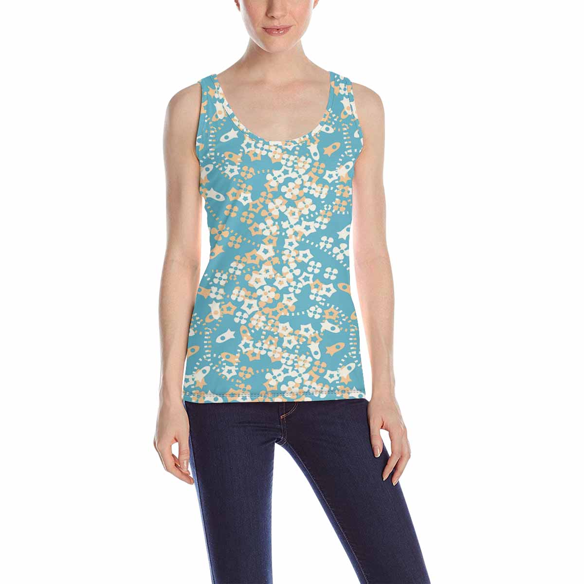 Women's Tank Top print with Pattern of small flowers stars and rockets