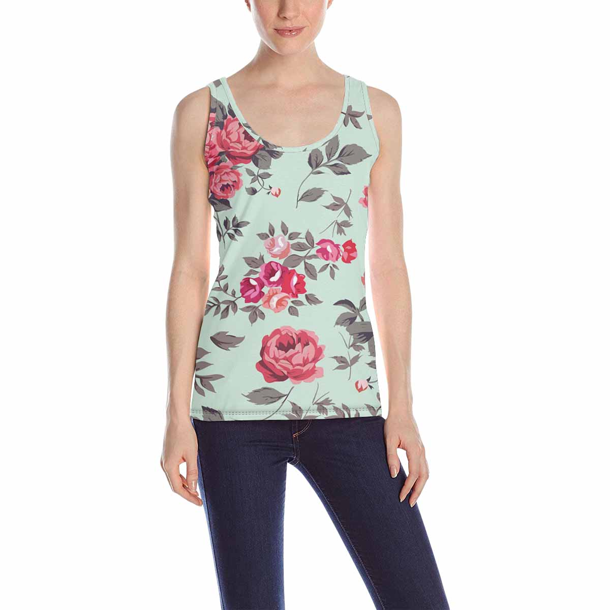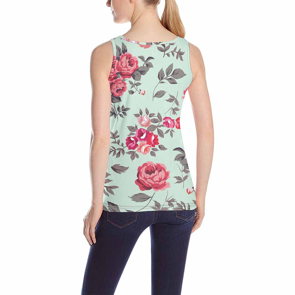 Womens Tank Tops print with retro rose pattern