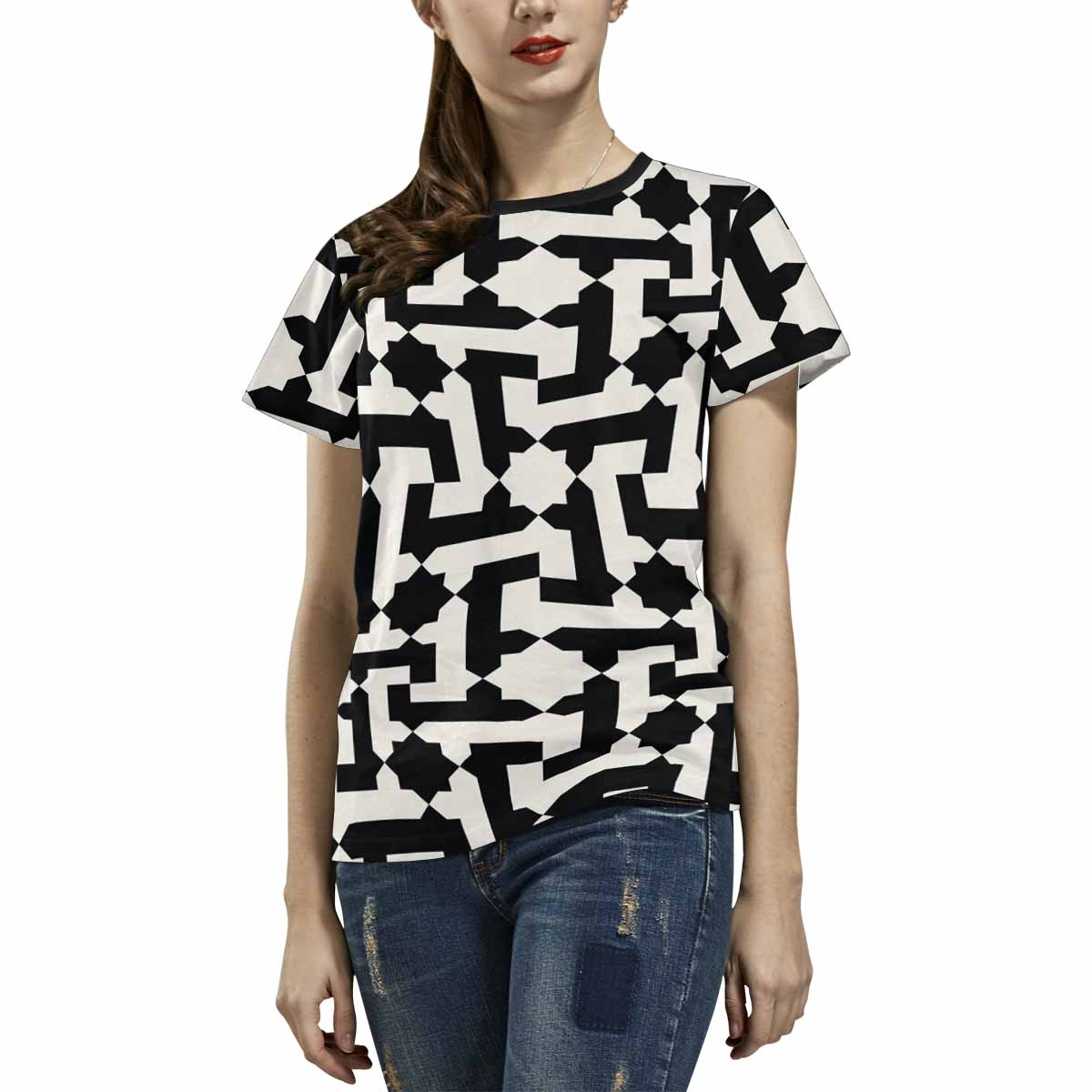 Womens graphic T-Shirts print with black Arabic geometric pattern