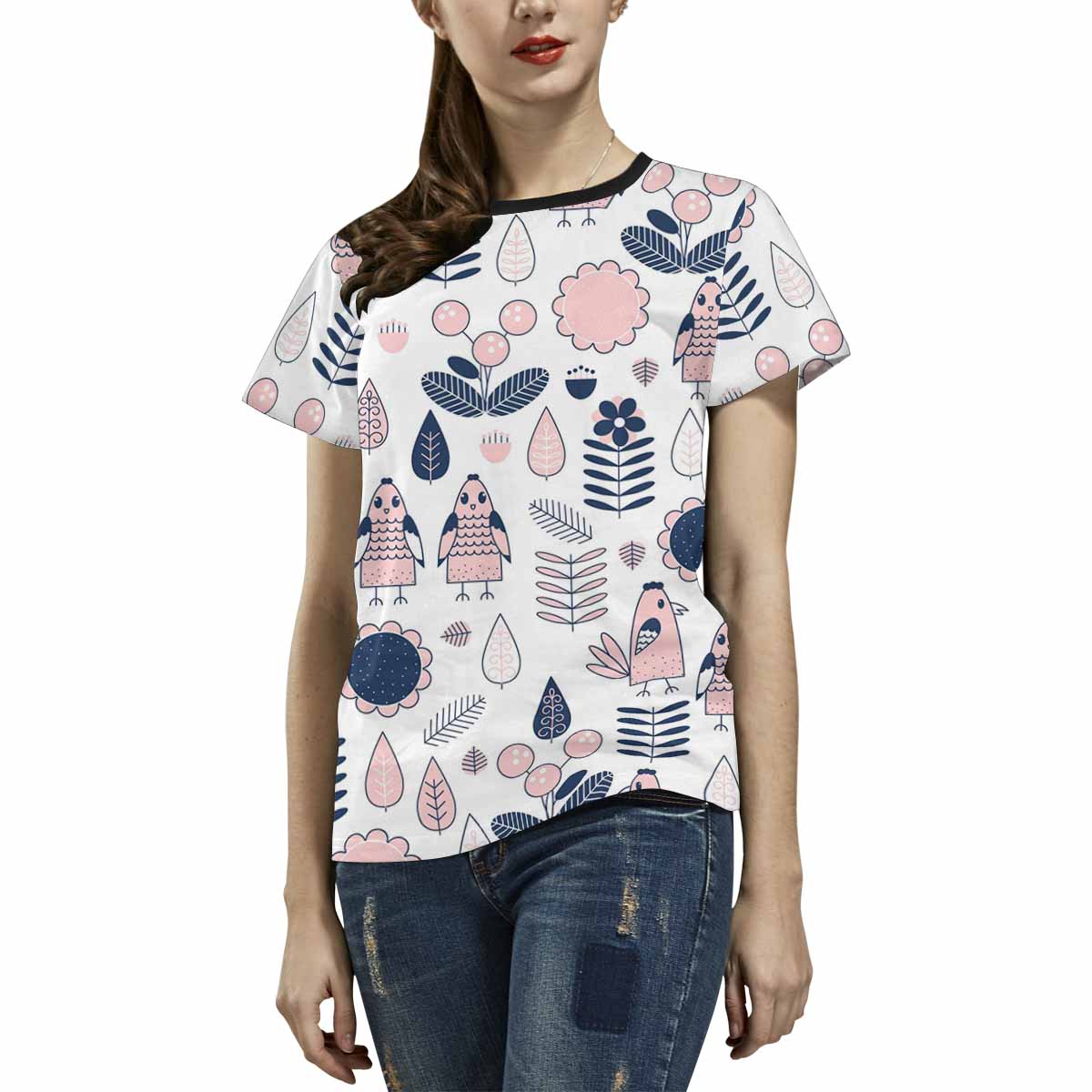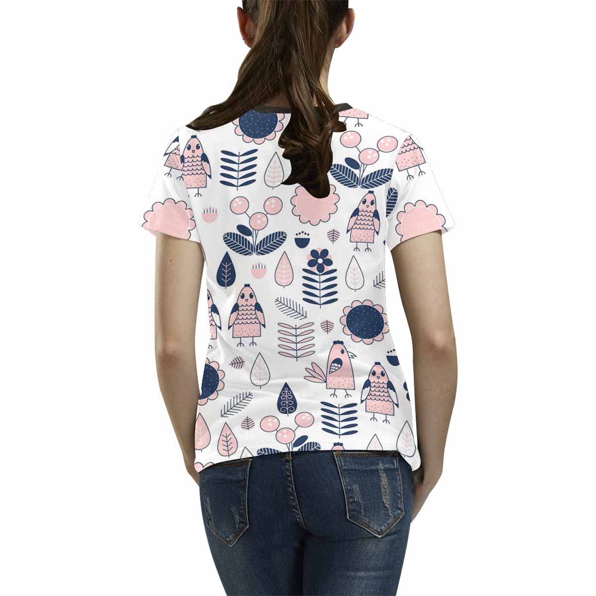 Womens graphic T-Shirts print with colorful cute chicken pattern