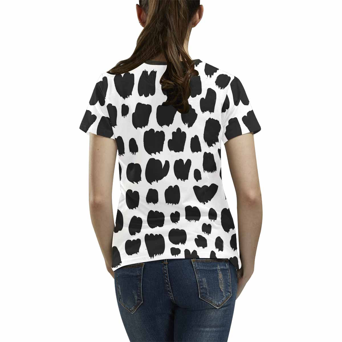 - 10.23 Oz. Polyester fabric. Dye-sublimation printing, Personalized all-over print T-shirt for women.