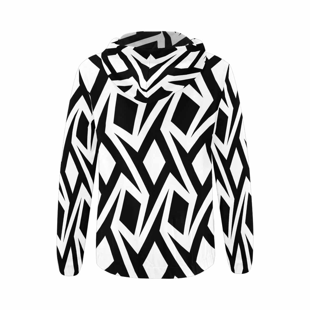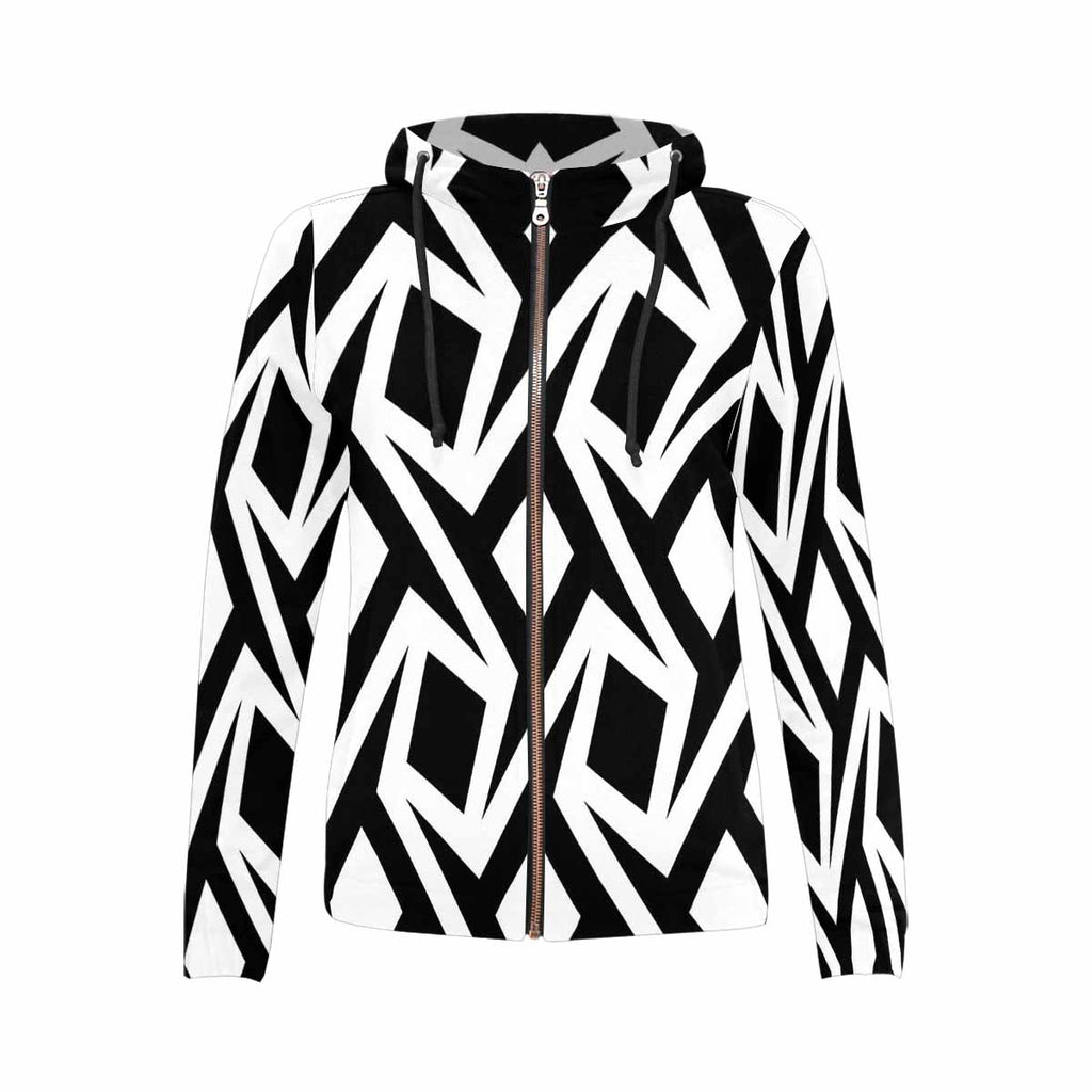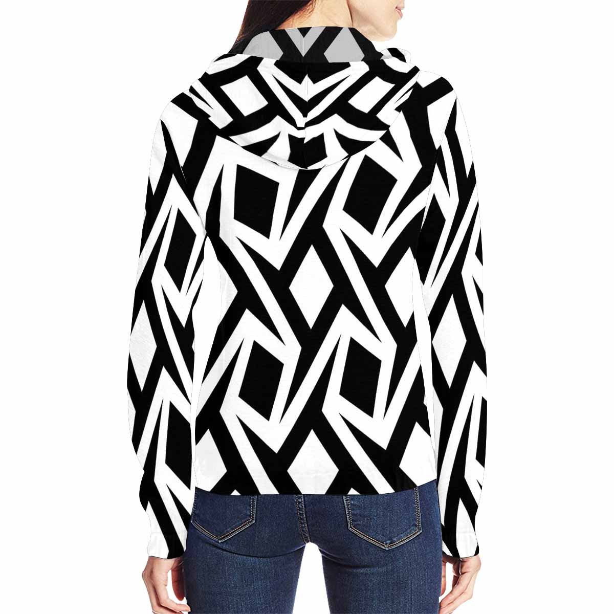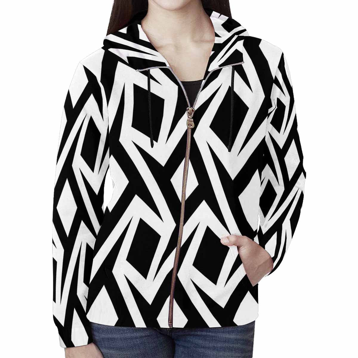 Women's Full Zip Hoodies print with black white Geometric pattern