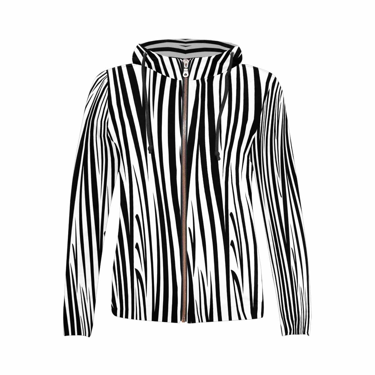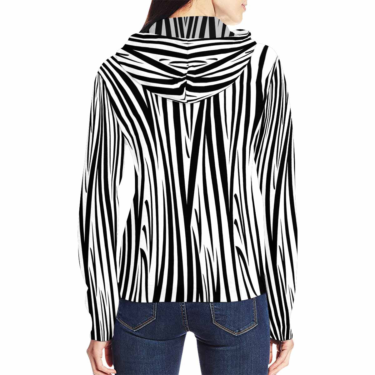 Women's Full Zip Hoodies print with black white Zebra Pattern