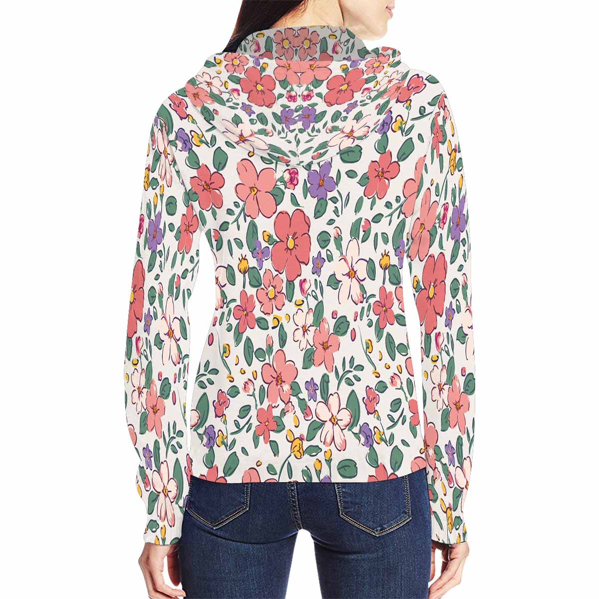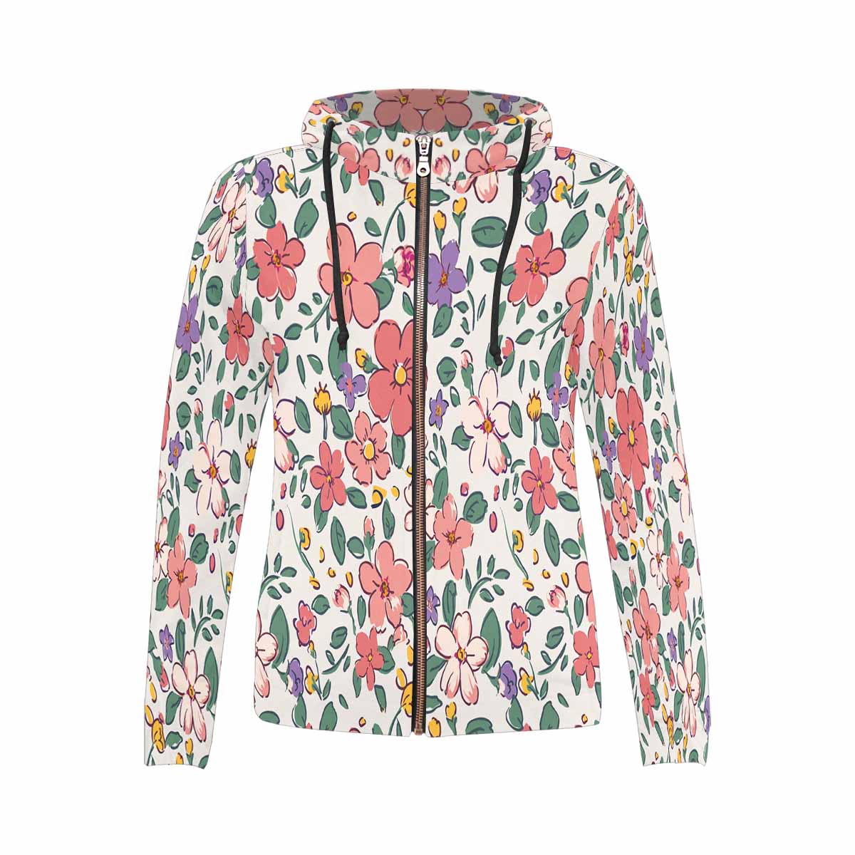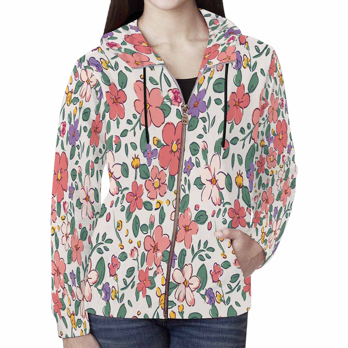 Women's Full Zip Hoodies print with colorful flowers leaves