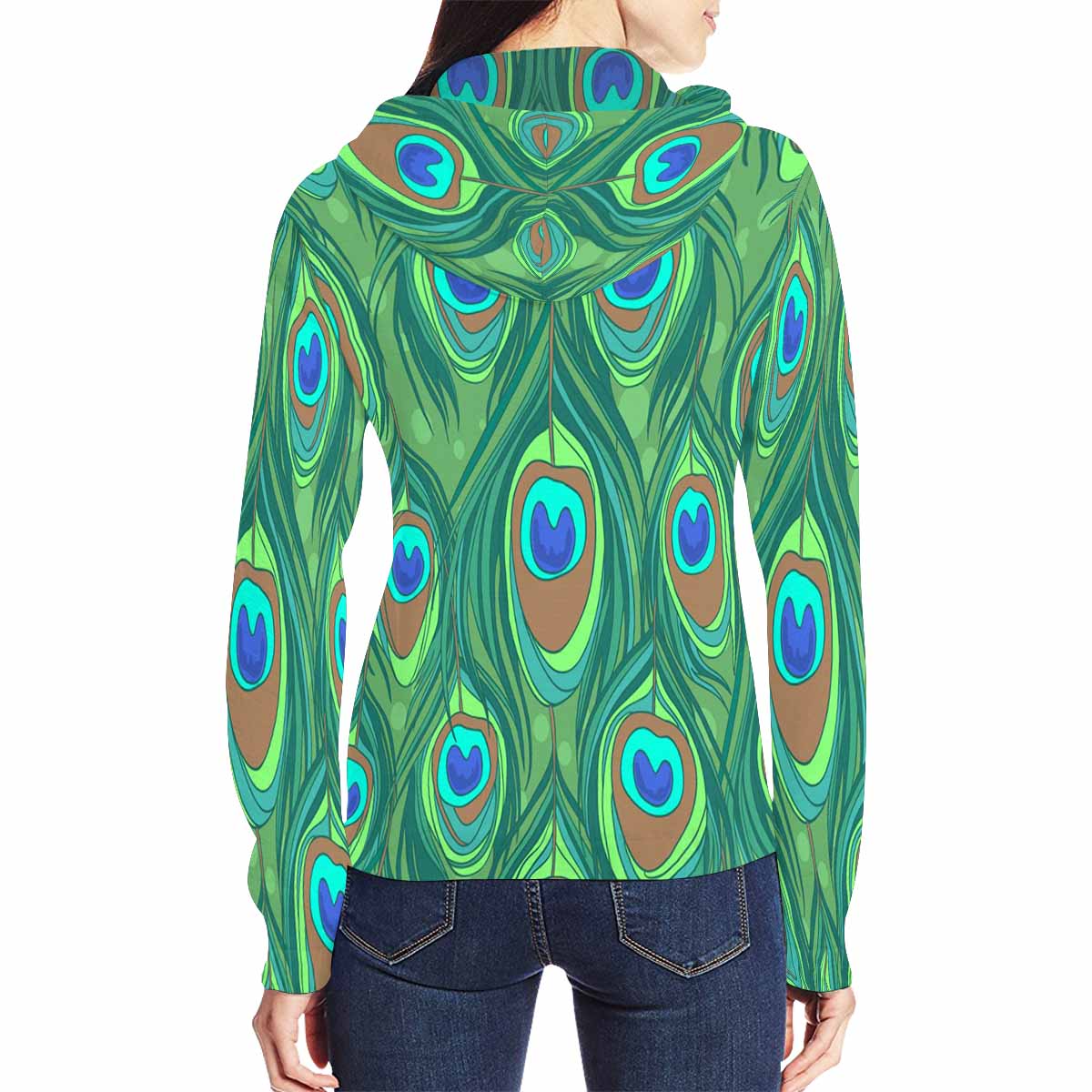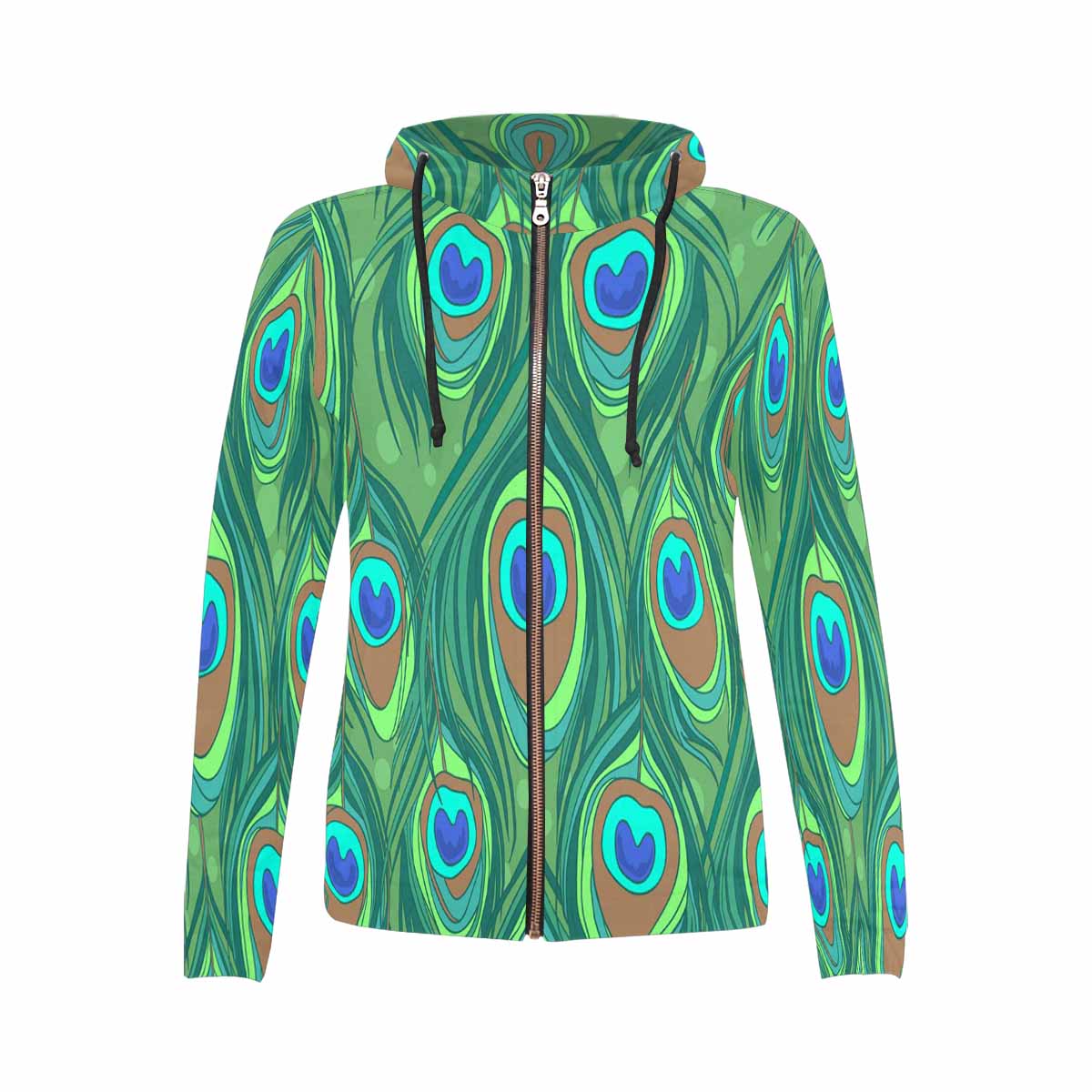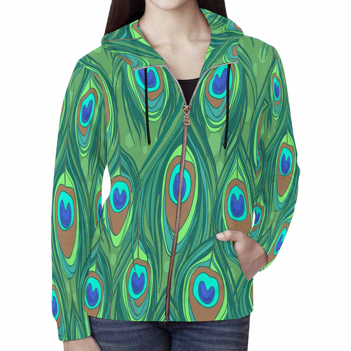 Women's Full Zip Hoodies print with Colorful peacock feather