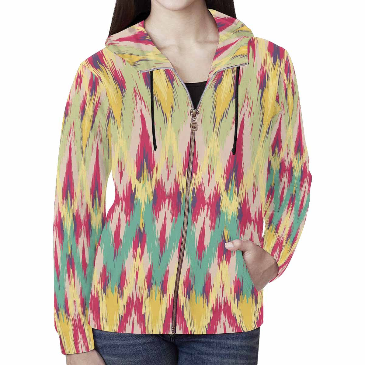 Women's Full Zip Hoodies print with ikat ethnic pattern