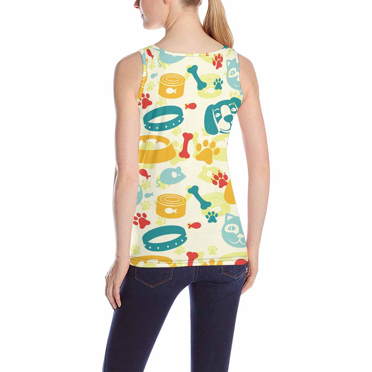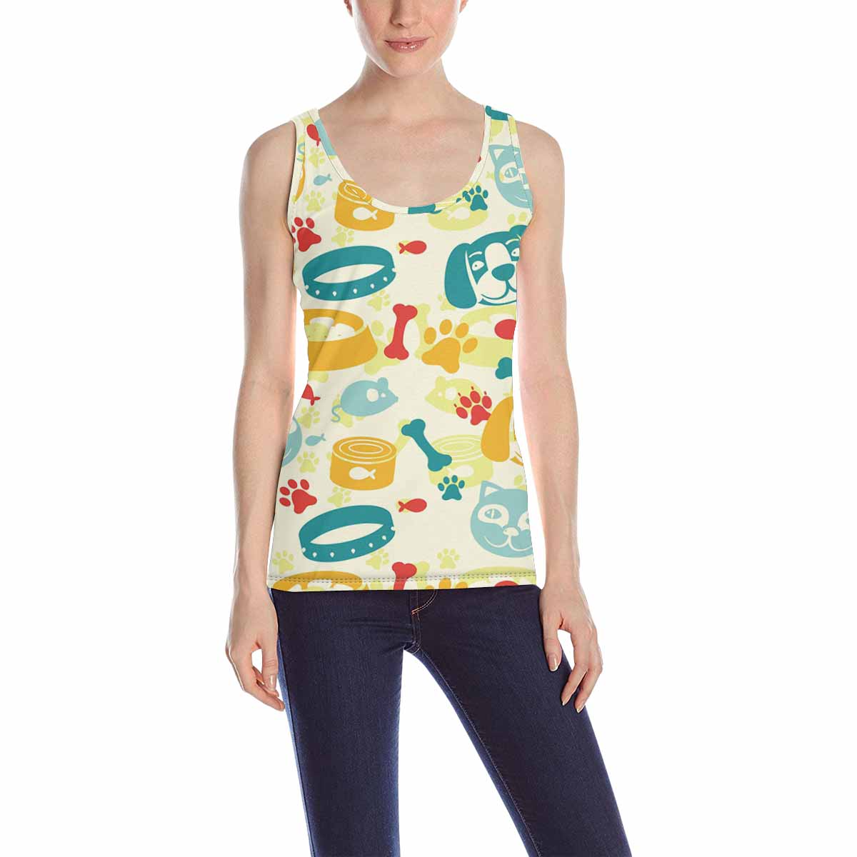 Women's Tank Top print with colorful funny cat and dog pattern