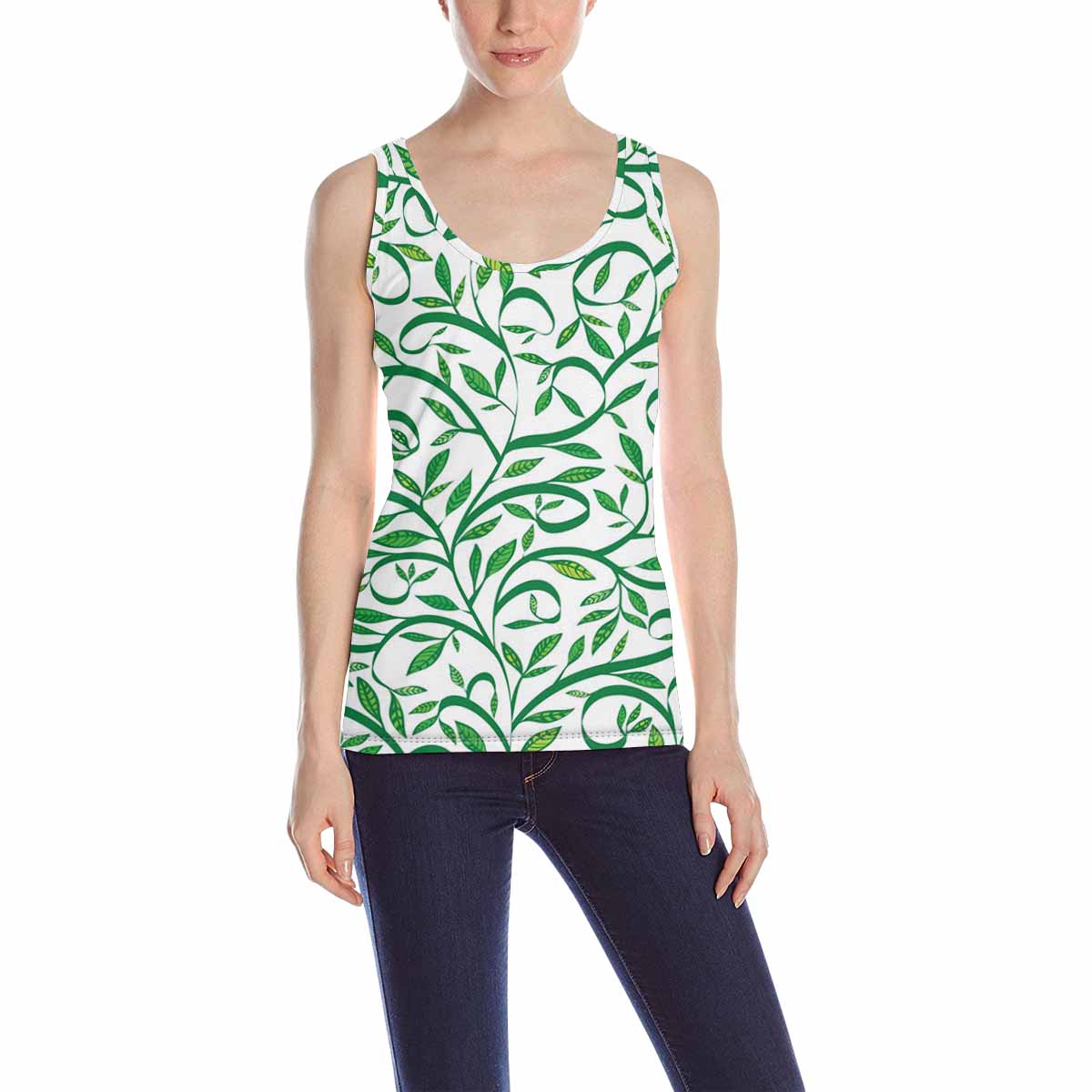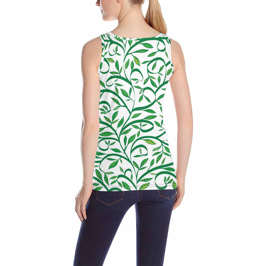 Women's Tank Top print with graphic Spring leaves pattern