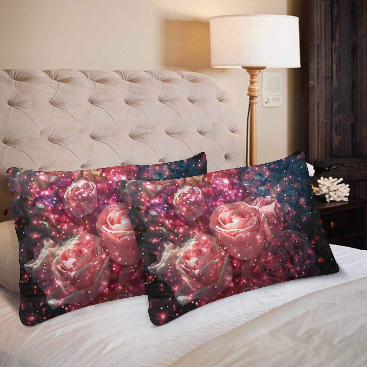 Abstract Bouquet Bose Flower with Glitter Pillow Cases Pillowcase Standard Size 20x30 Set of 2, Rectangle Pillow Covers Protector for Home Couch Sofa Bedding Decorative