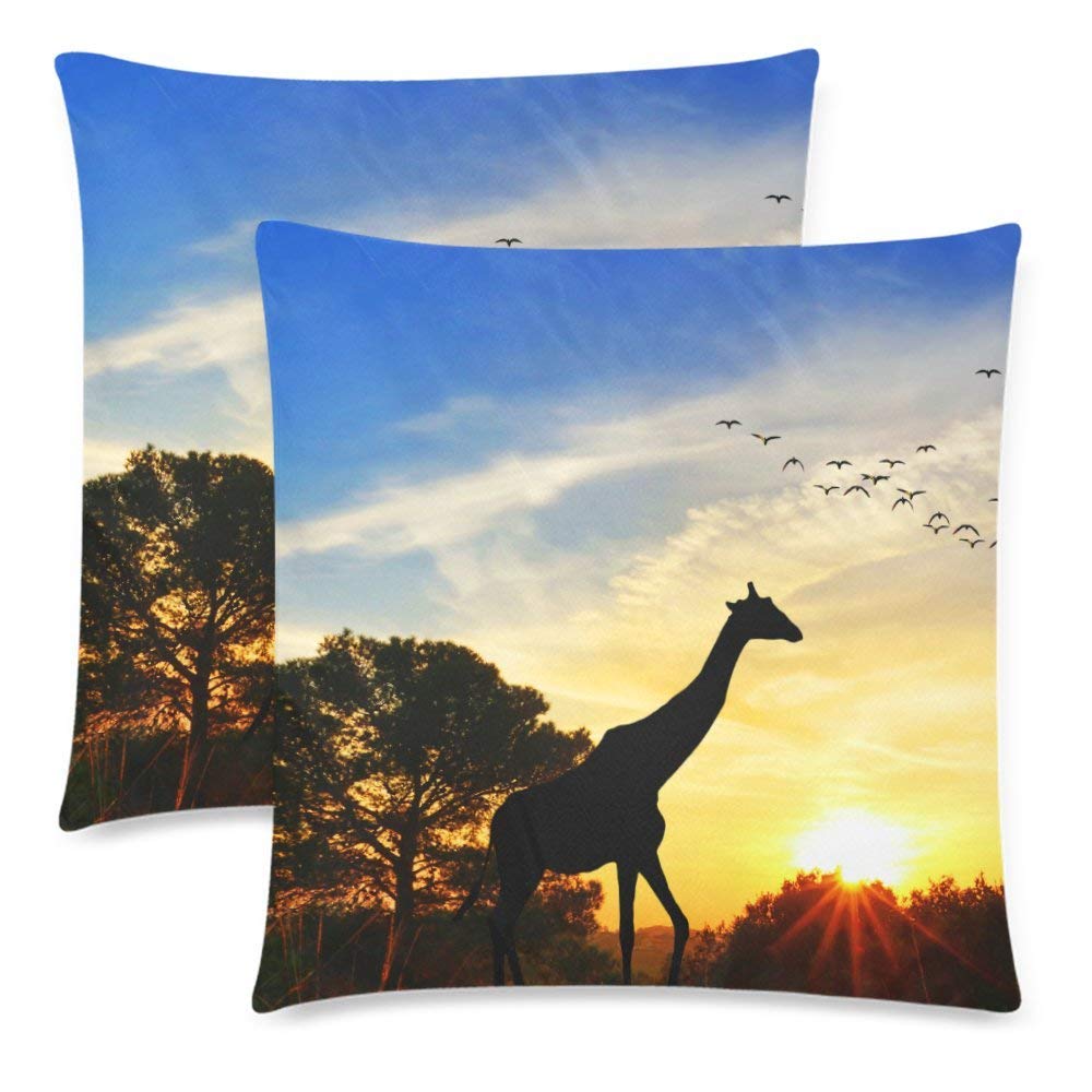 African Animal Pillowcase Protector 18x18 Twin Sides, Giraffe in the Field at Sunset Zippered Pillow Case Covers Decorative, Set of 2