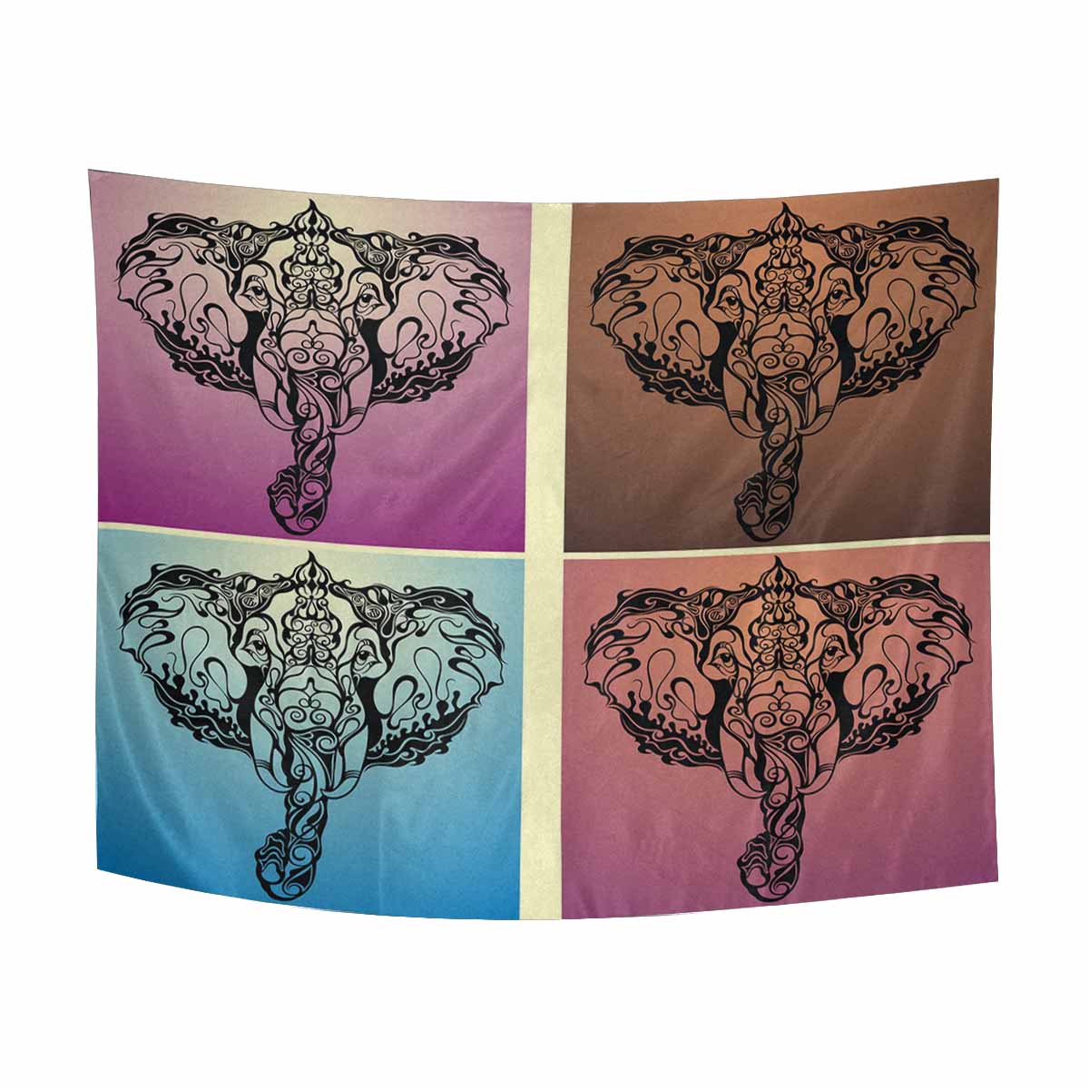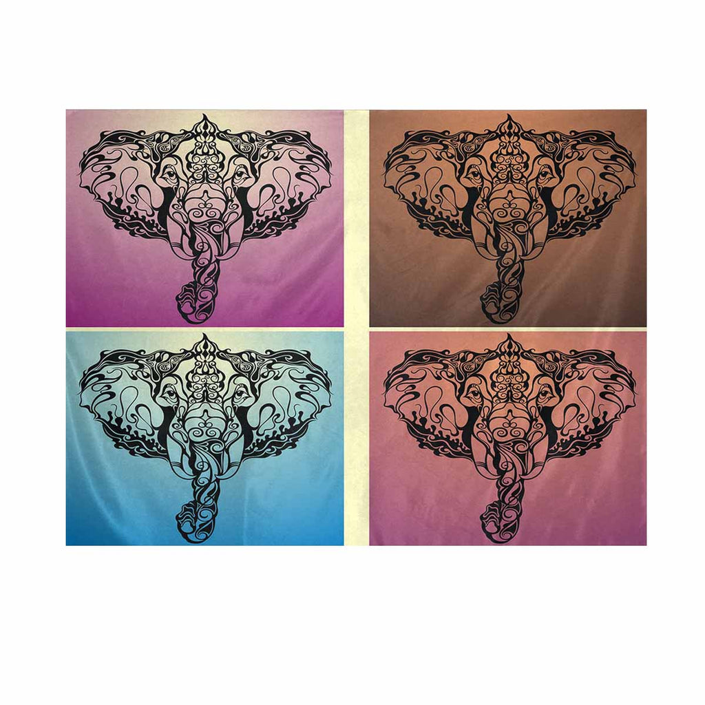 Animals themed Wall Tapestries print with Ethnic patterned head Set of elephant