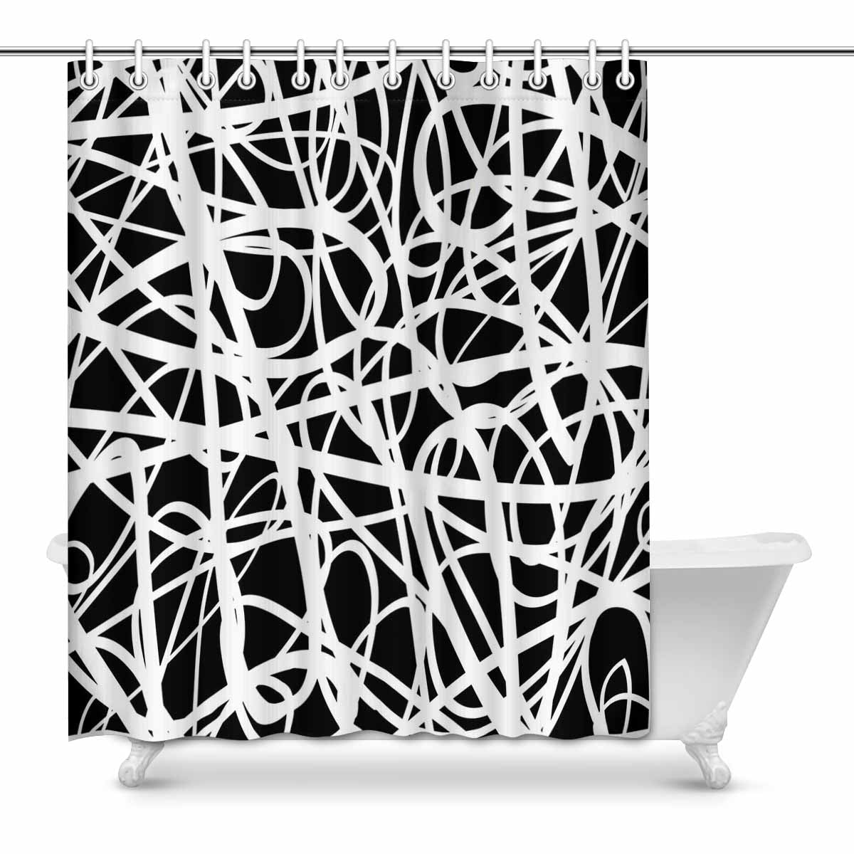 Bathroom Shower Curtain 60in x 72in with black and white abstract pieces pattern
