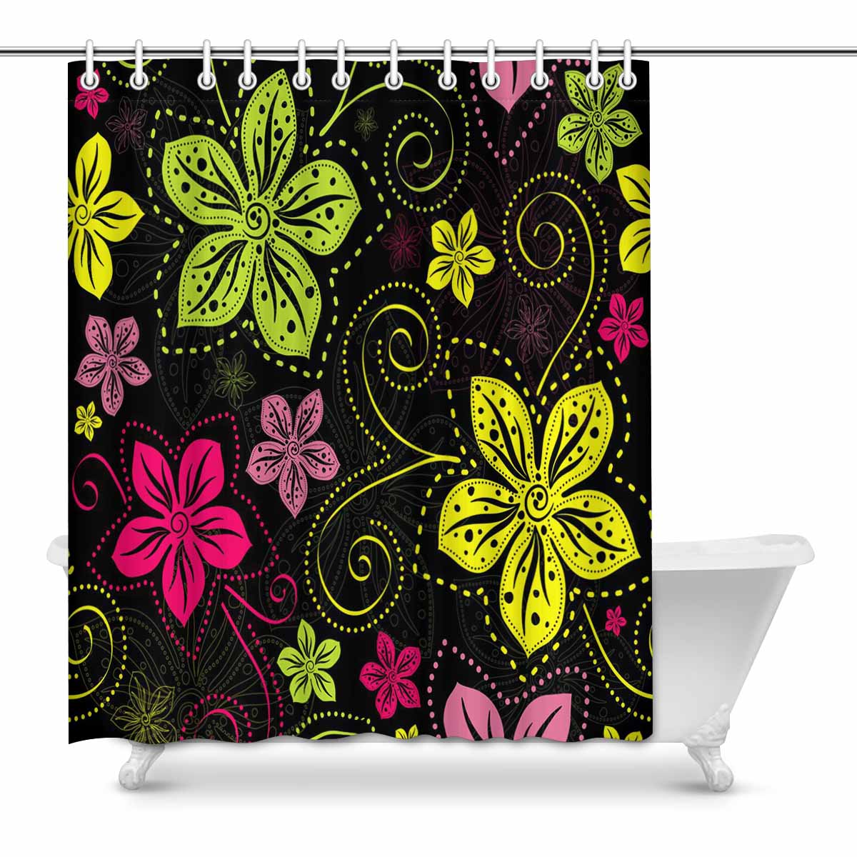Bathroom Shower Curtain 60in x 72in with black floral pattern