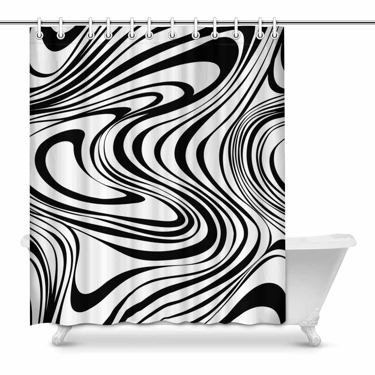 Bathroom Shower Curtain 60in x 72in with black white Curve strip