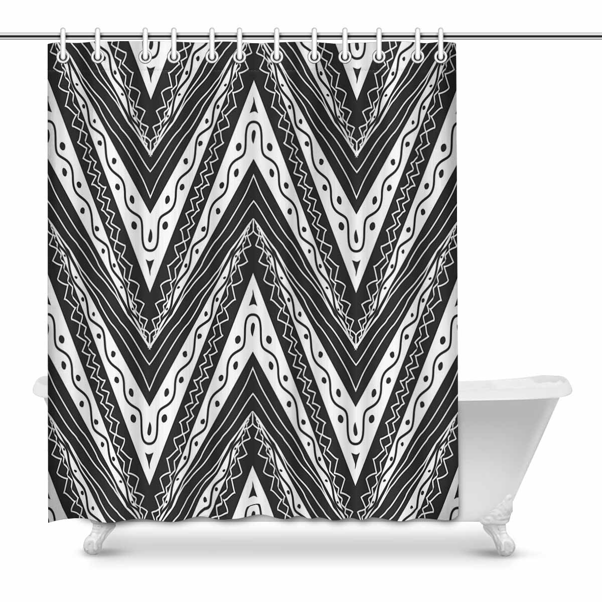 Bathroom Shower Curtain 60in x 72in with black white Zig zag pattern