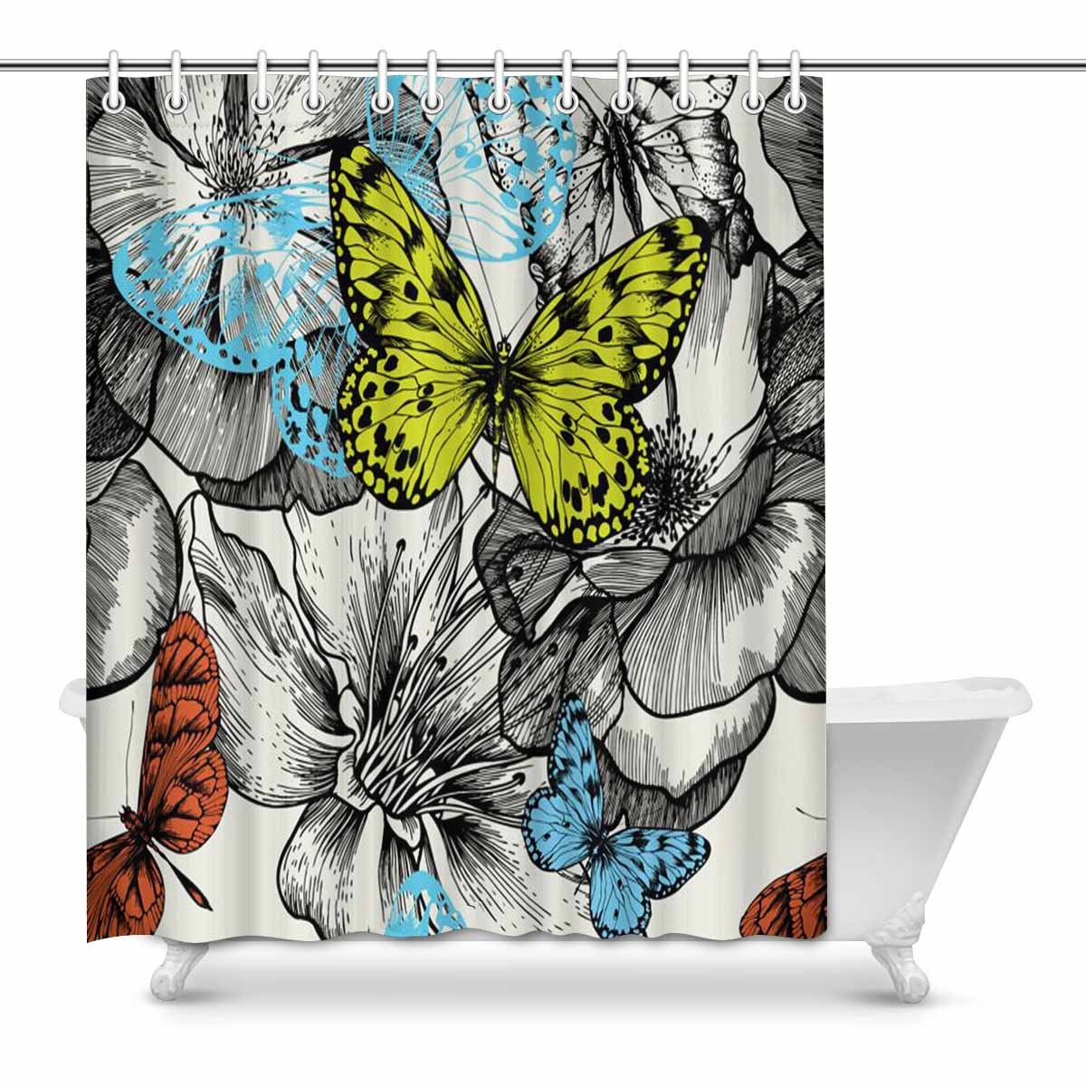 Bathroom Shower Curtain 60in x 72in with blooming roses and flying Butterfly
