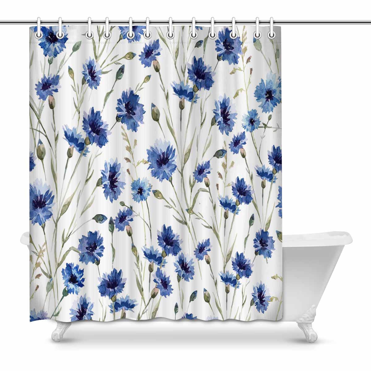 Bathroom Shower Curtain 60in x 72in with Blue flowers