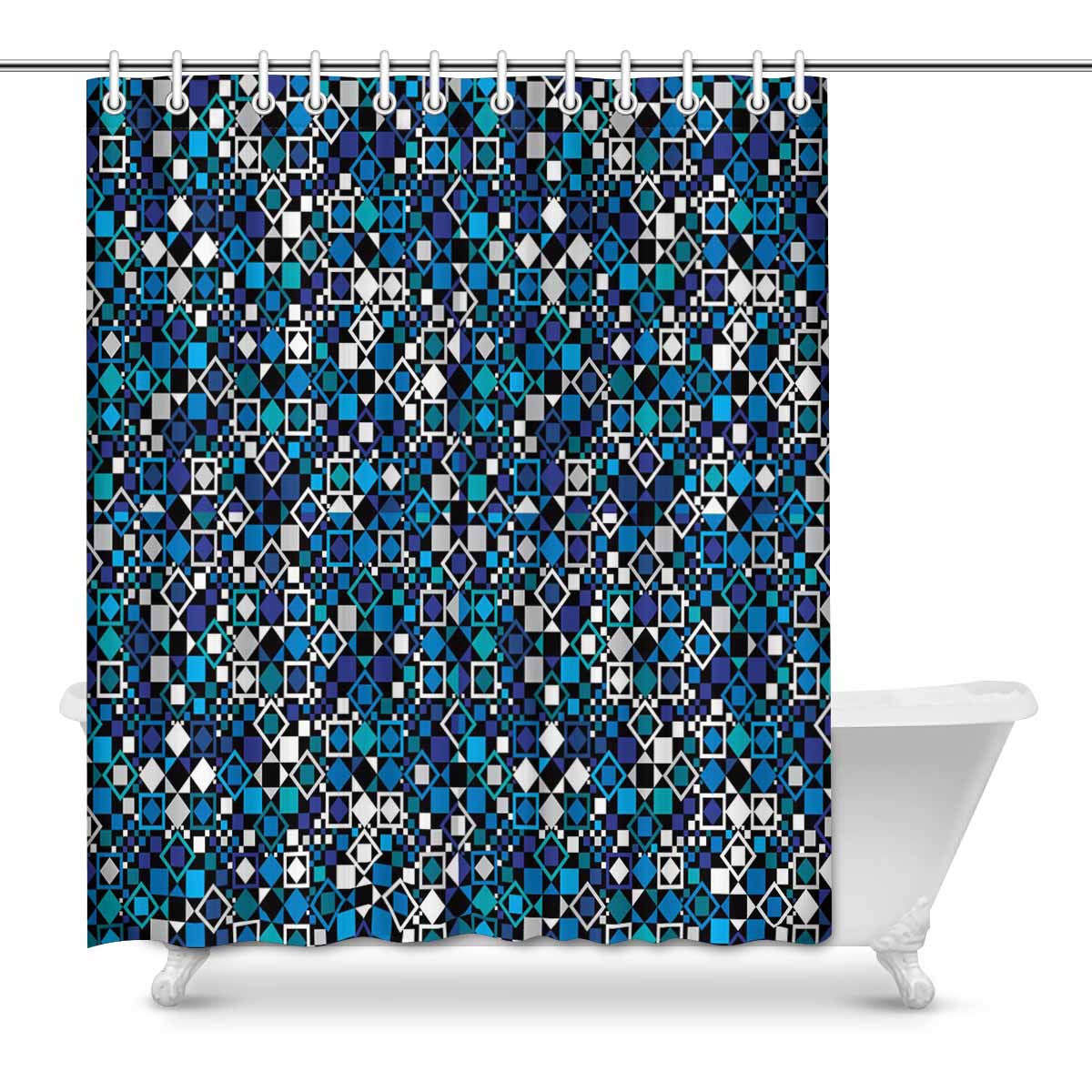 Bathroom Shower Curtain 60in x 72in with blue geometric pattern