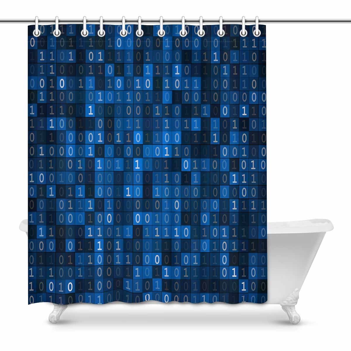 Bathroom Shower Curtain 60in x 72in with Blue screen binary code pattern