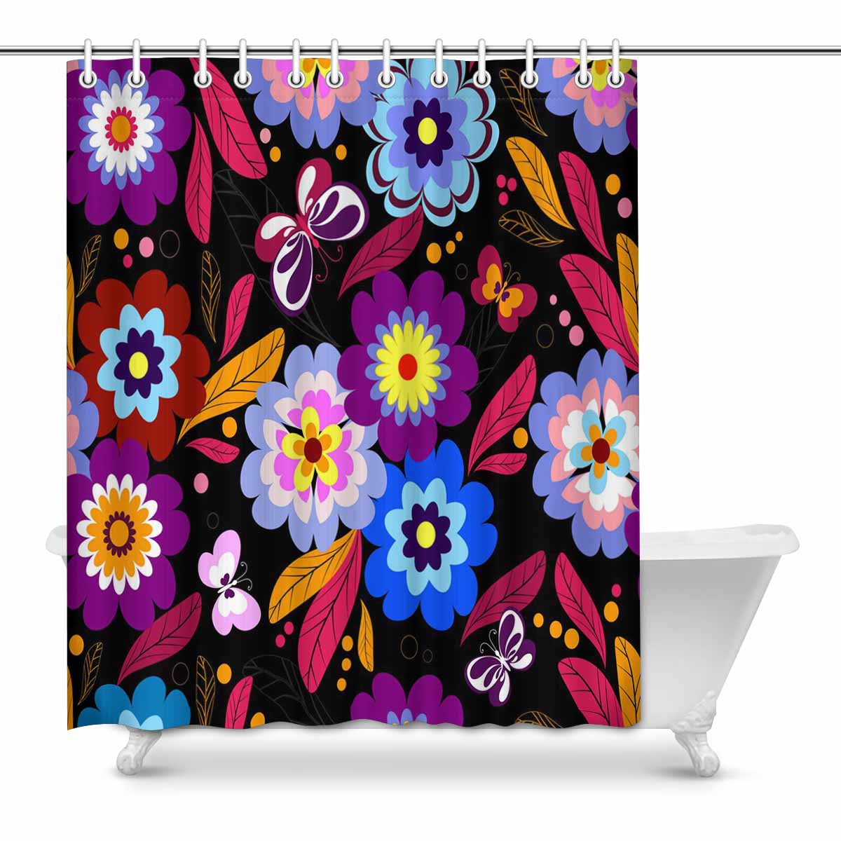 Bathroom Shower Curtain 60in x 72in with bright colorful Floral