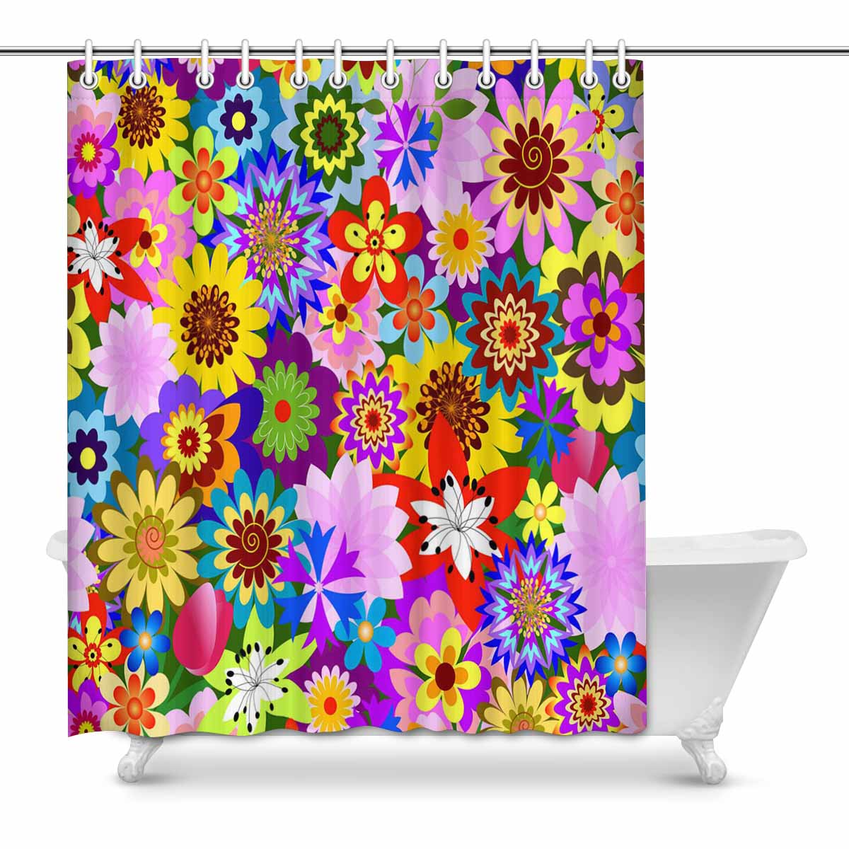 Bathroom Shower Curtain 60in x 72in with bright colorful flowers