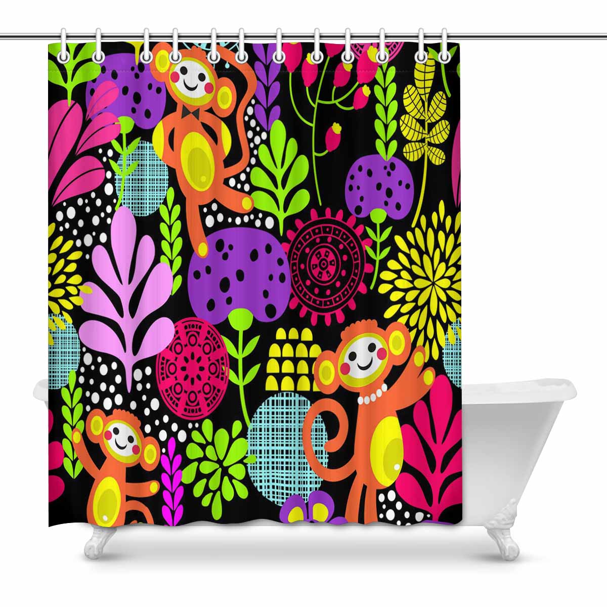 Bathroom Shower Curtain 60in x 72in with bright flowers monkeys