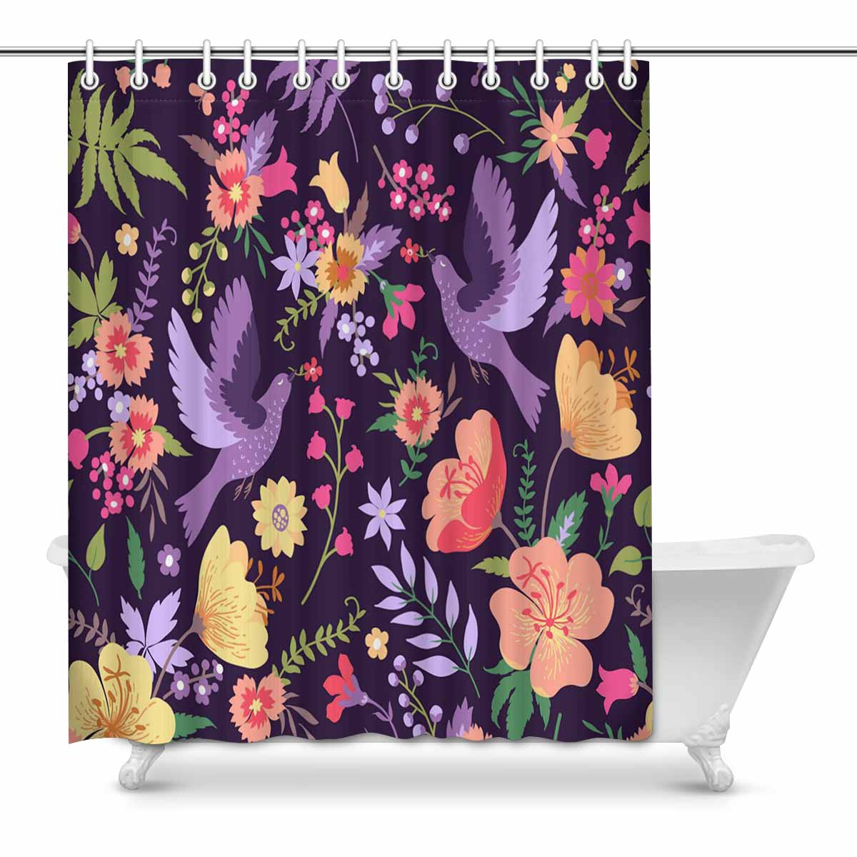 Bathroom Shower Curtain 60in x 72in with bright Pattern with birds and flowers