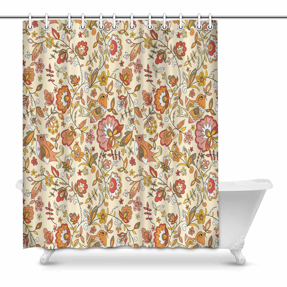 Bathroom Shower Curtain 60in x 72in with brown flowers birds