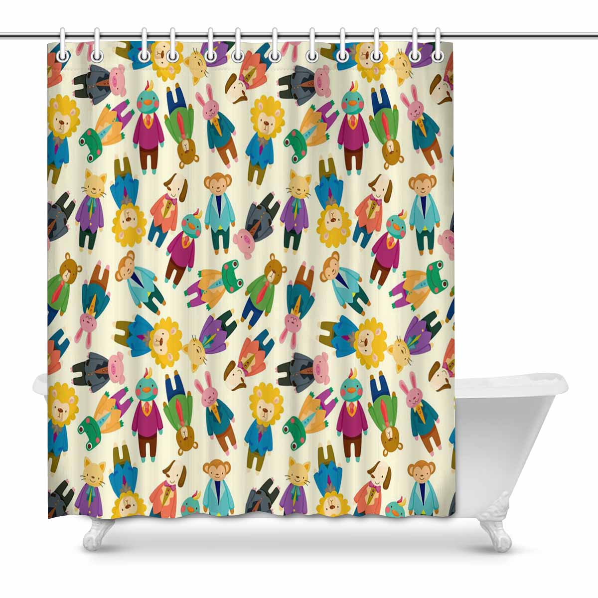 Bathroom Shower Curtain 60in x 72in with Cartoon animal office worker pattern
