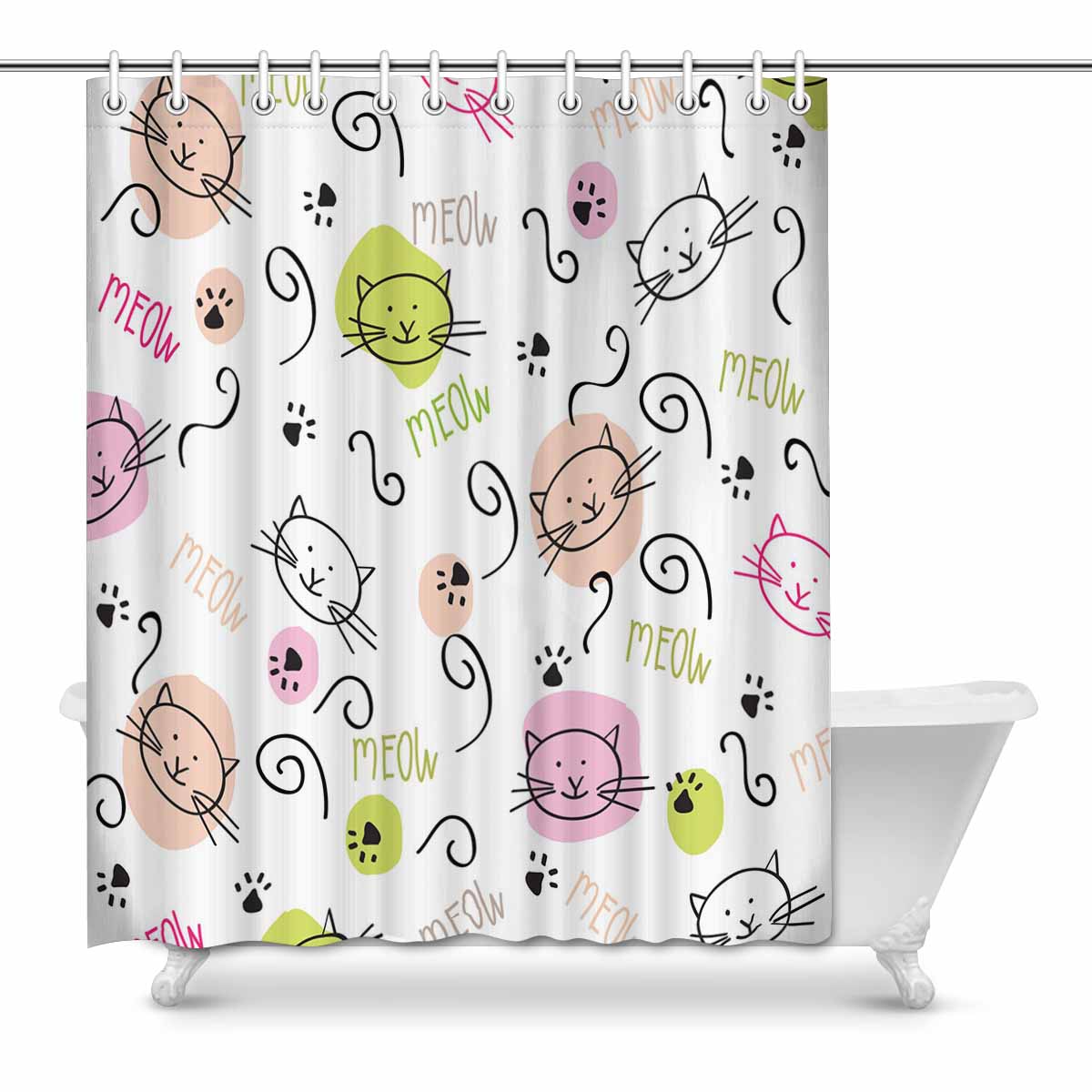 Bathroom Shower Curtain 60in x 72in with Cartoon pattern with cute cats